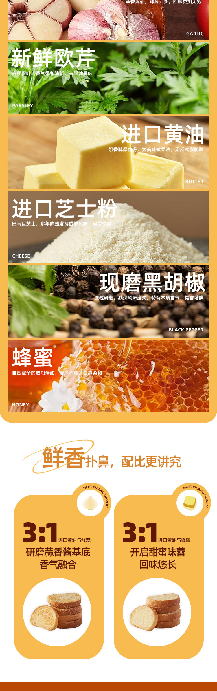 AKAK 烘焙食品 法式蒜香面包干法式蜂蜜黄油味面包饼干早餐糕点 100g/袋*2袋