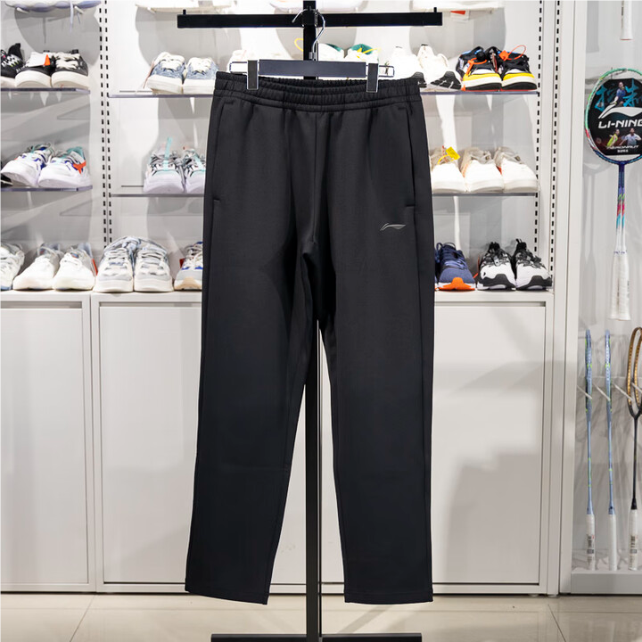 李宁男子直筒舒适宽松针织运动裤AKLU201-3曜石灰