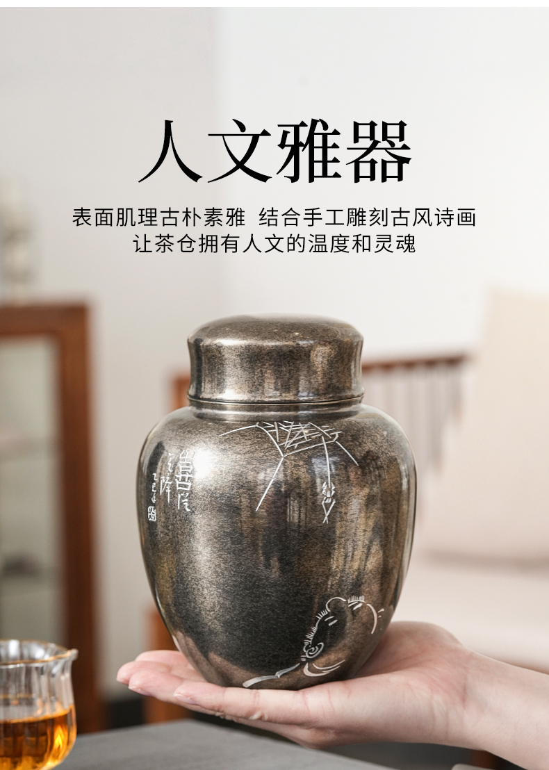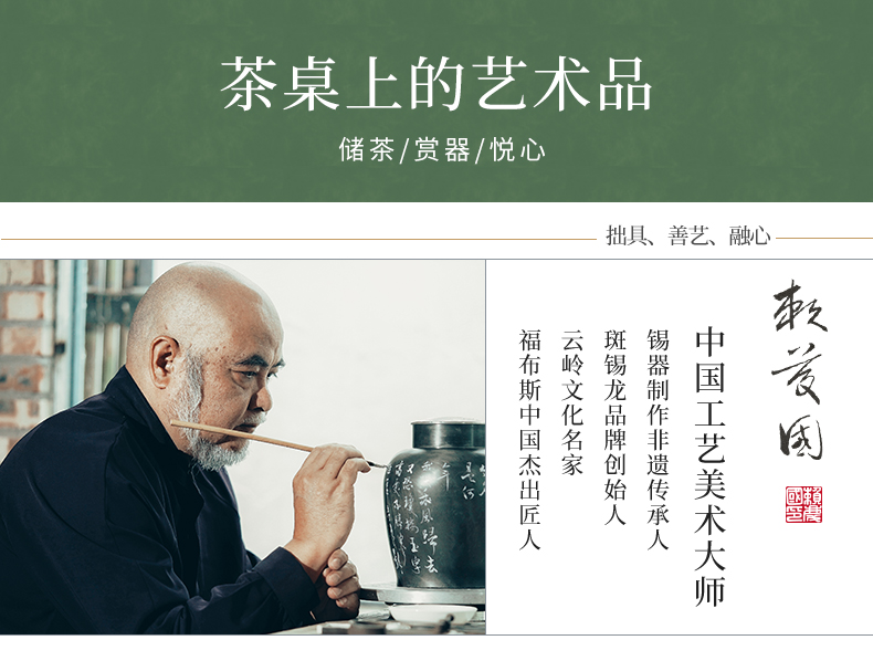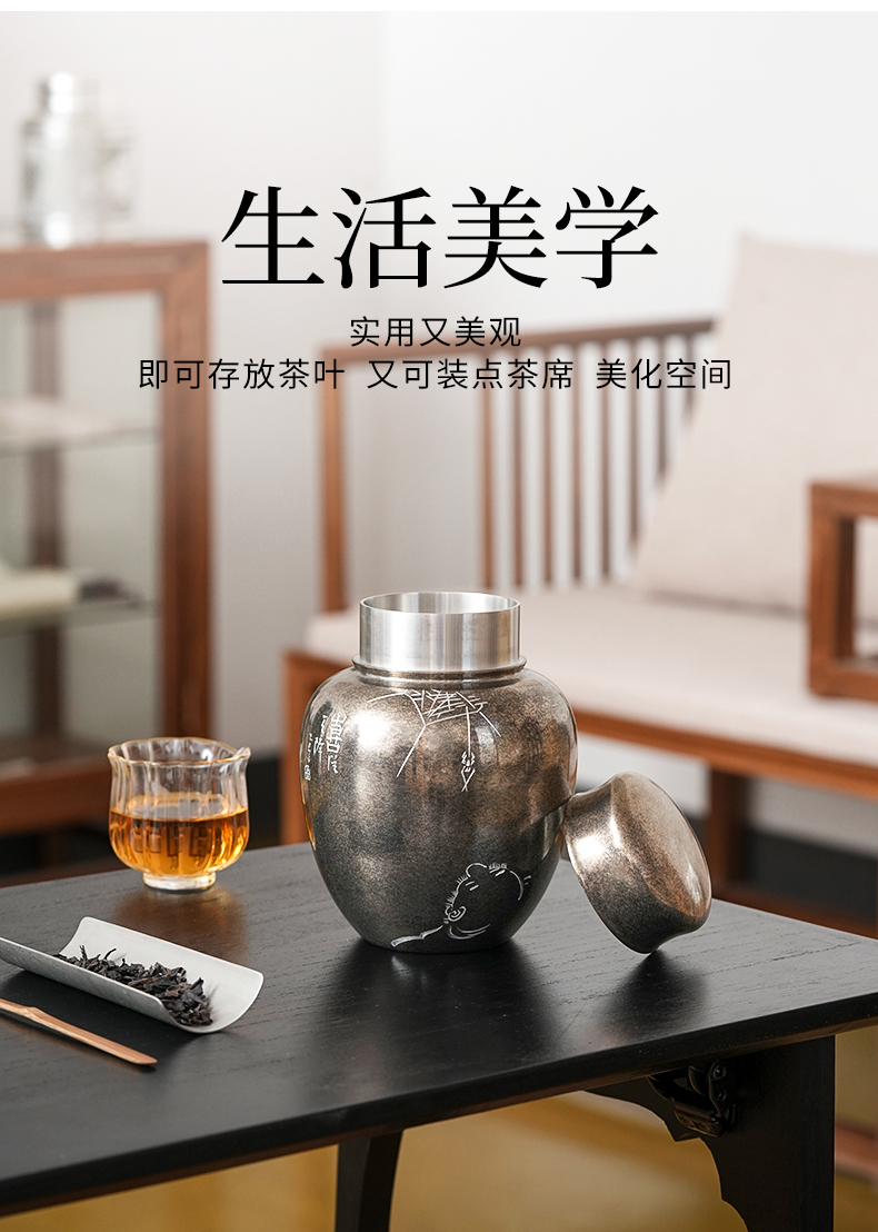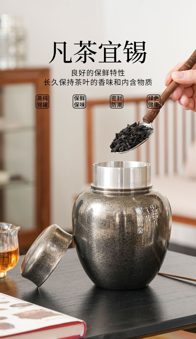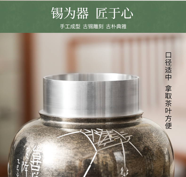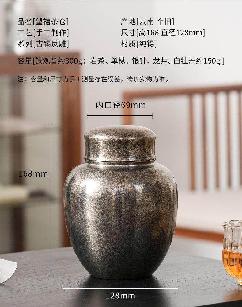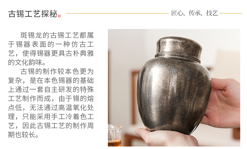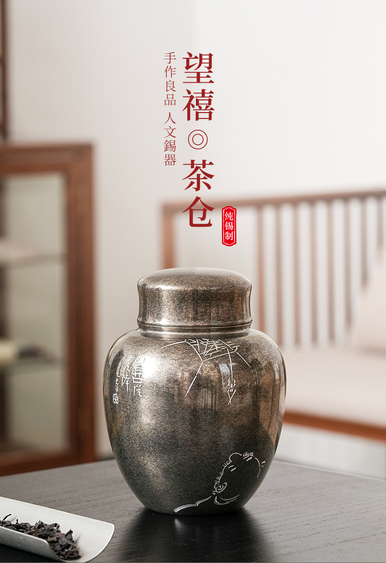 斑锡龙望禧茶仓复古中号锡罐纯锡茶叶罐密封储茶云南个旧手工锡器