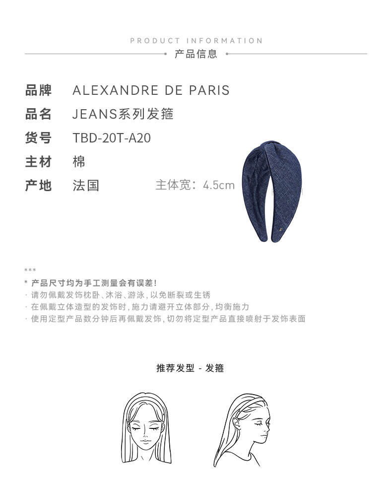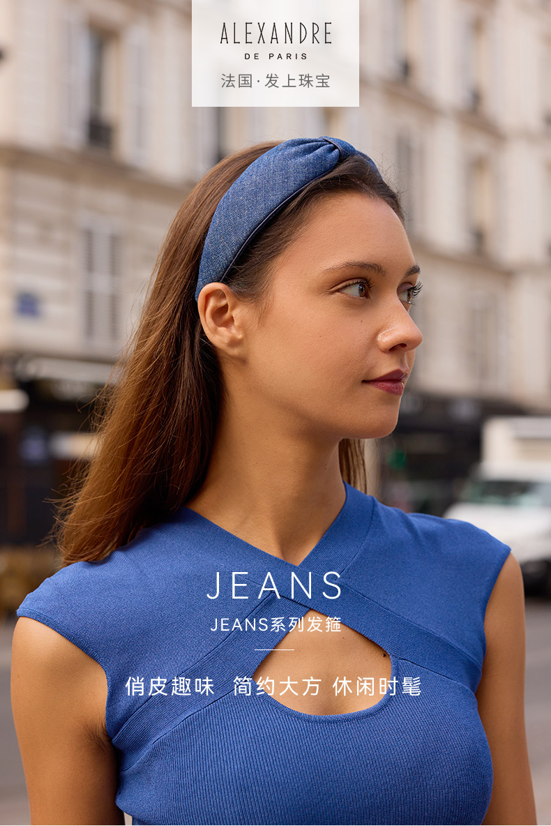 品牌直发 Alexandre De Paris JEANS系列发箍 M蓝色