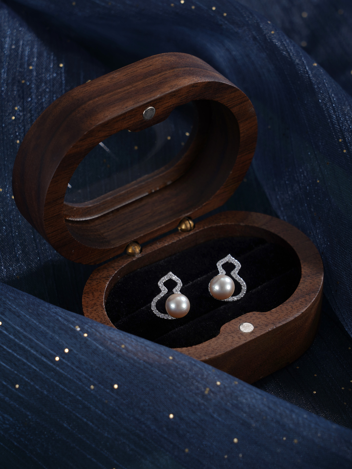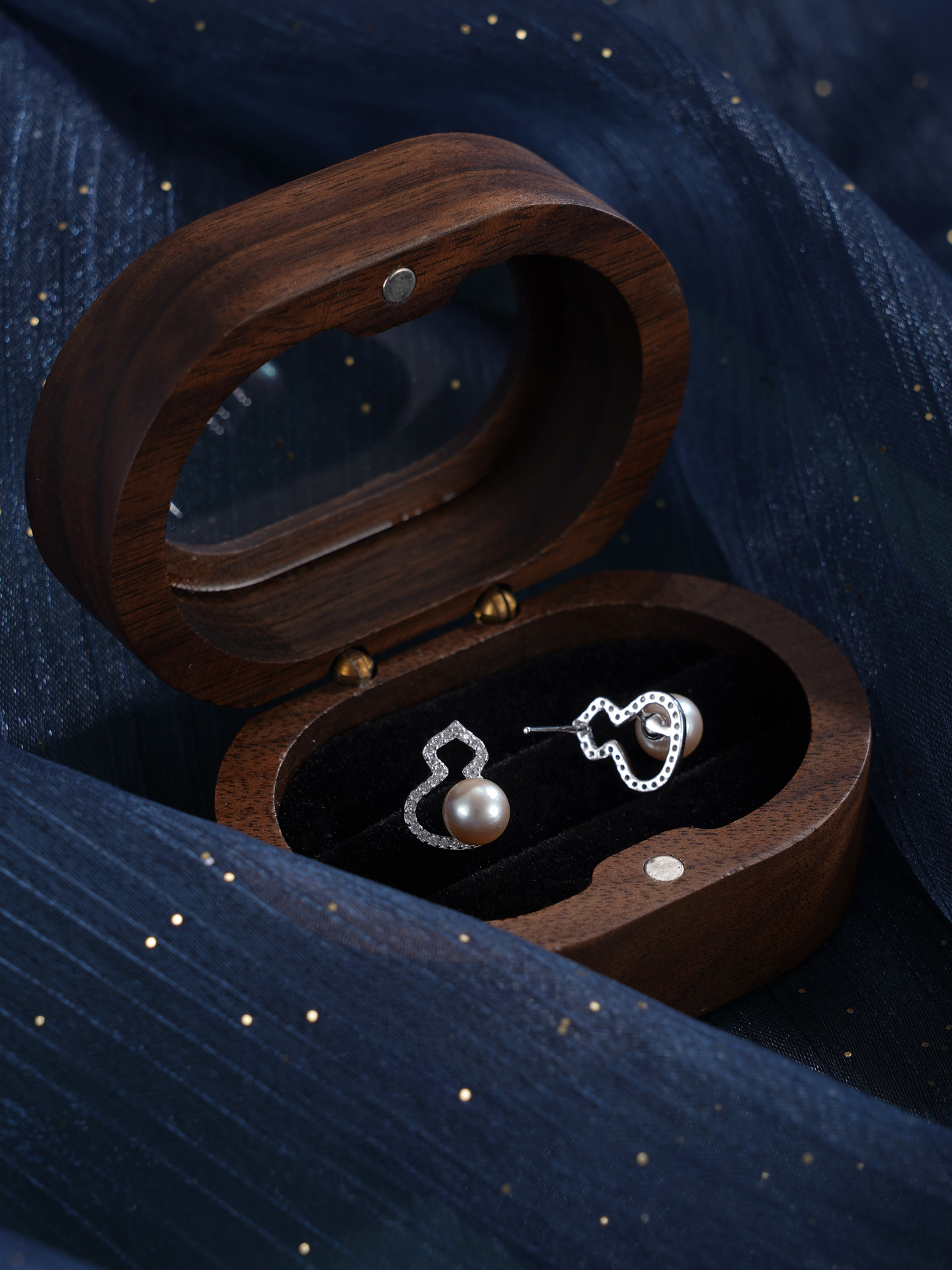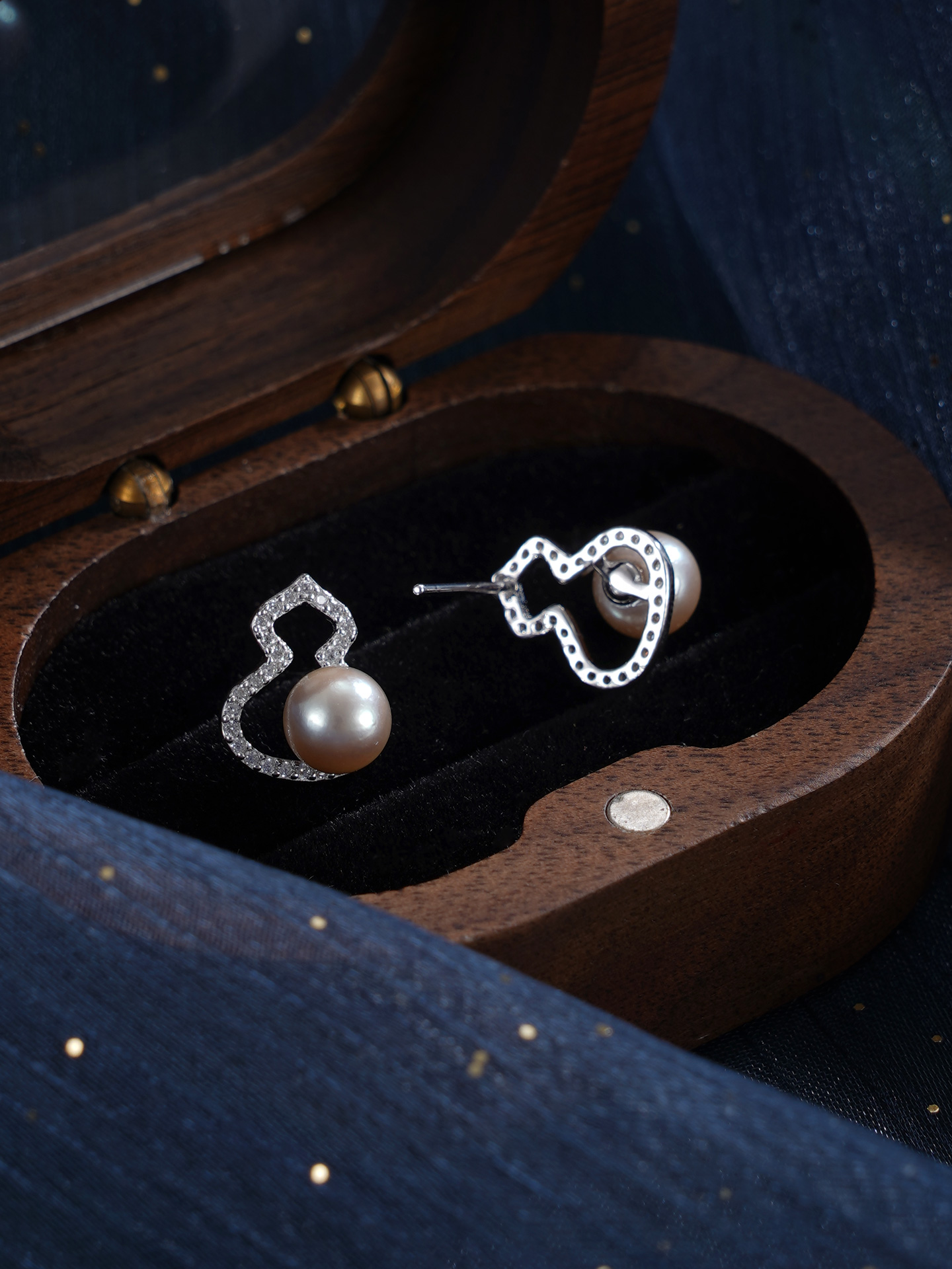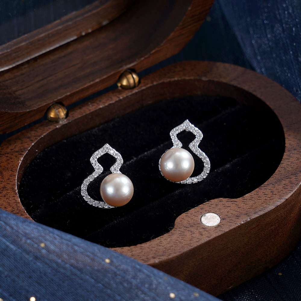 子佩集【纳福之喜】银S925珍珠惜王妃耳钉【MZEH005】6.5mm珠葫芦灰珠2601