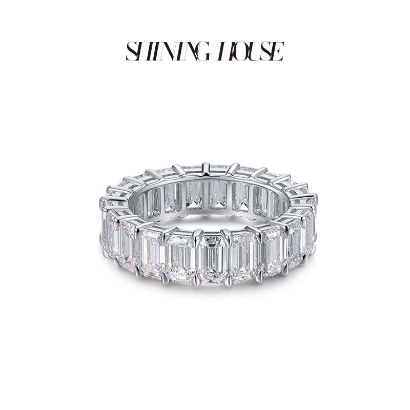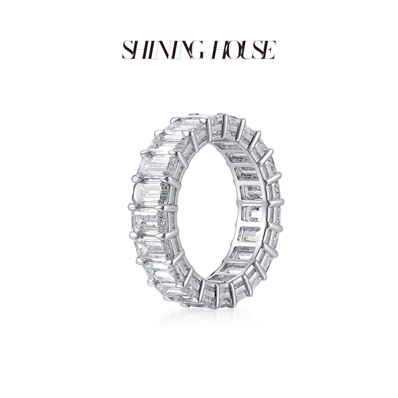 【预售】ShiningHouse[培育] 18k金钻石戒指 长方形克拉钻人工真钻人造钻石K金戒指豪华排钻戒指悦己送礼臻选【此商品不支持7天无理由退货退款】预计3日发货