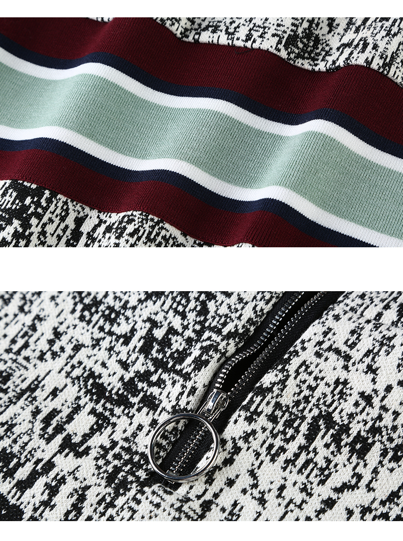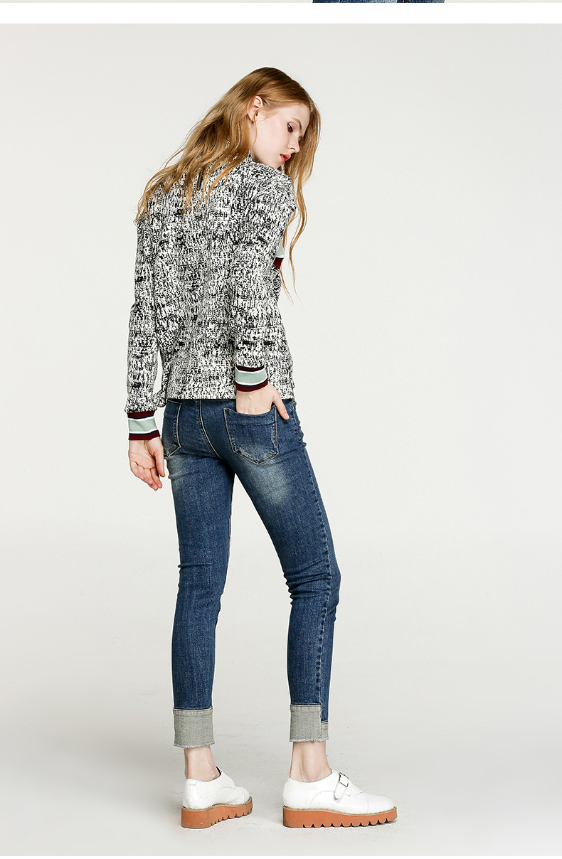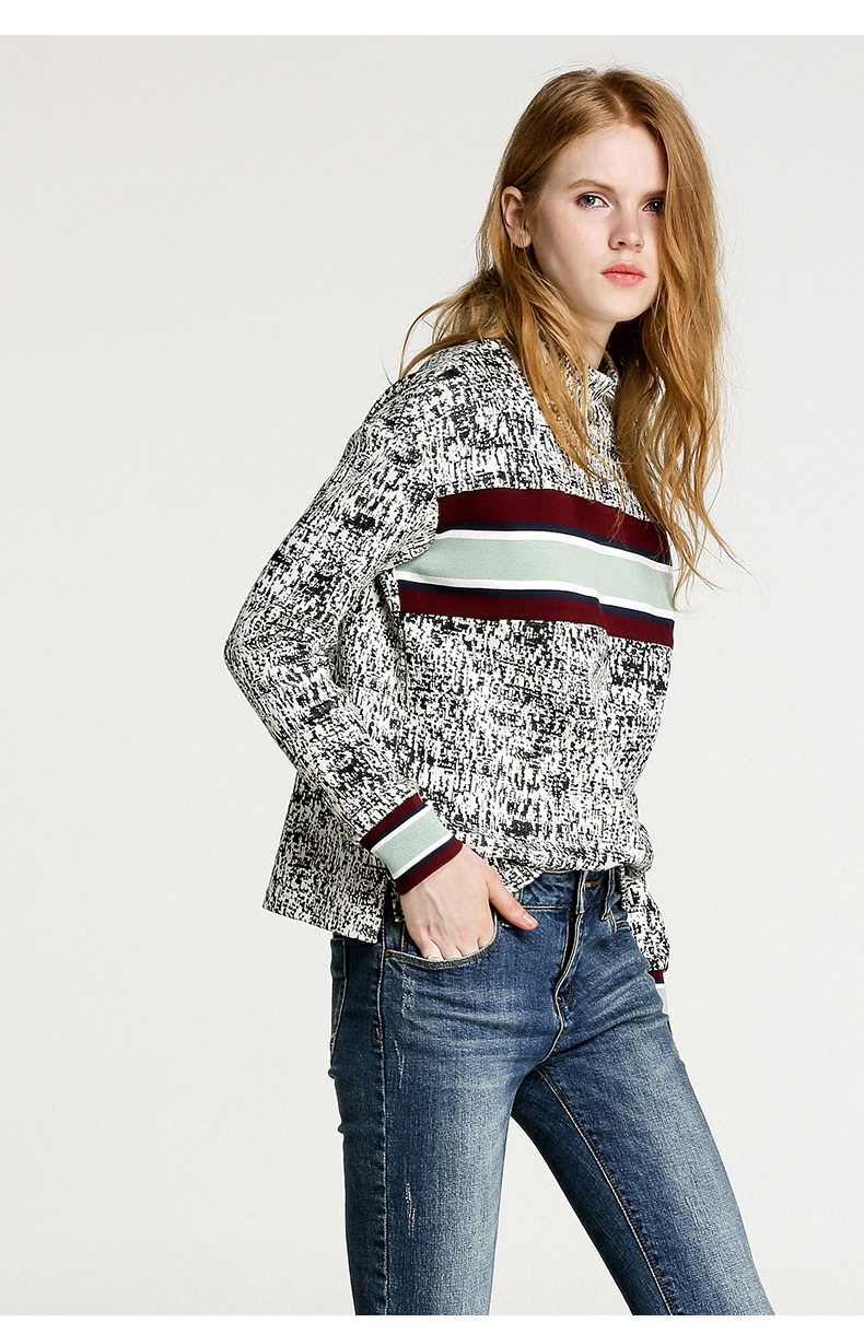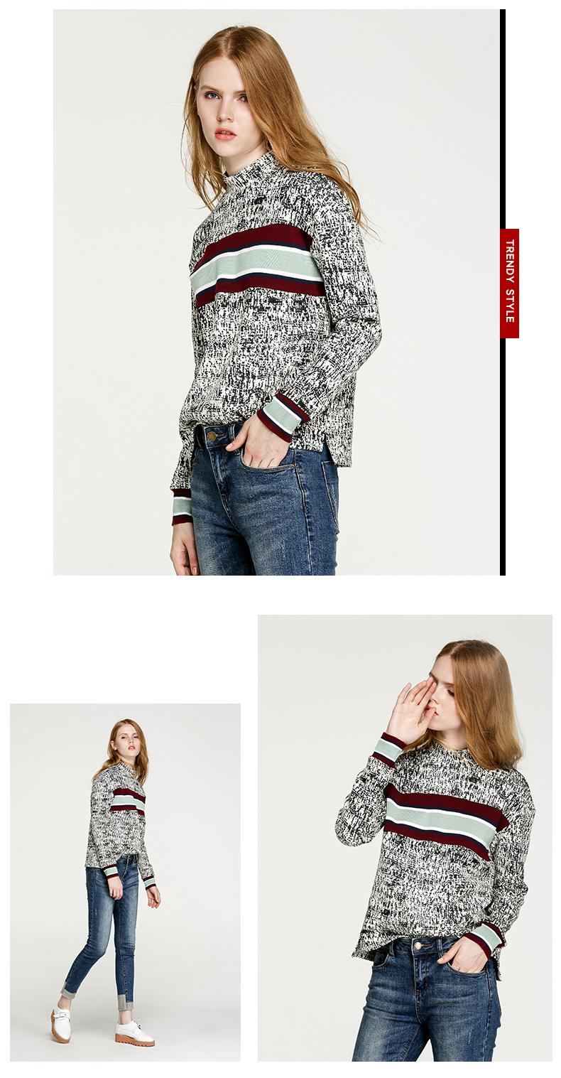 NEELLY/纳俪冬装新款短款女黑白拼色小高领毛针织线衫T恤卫衣