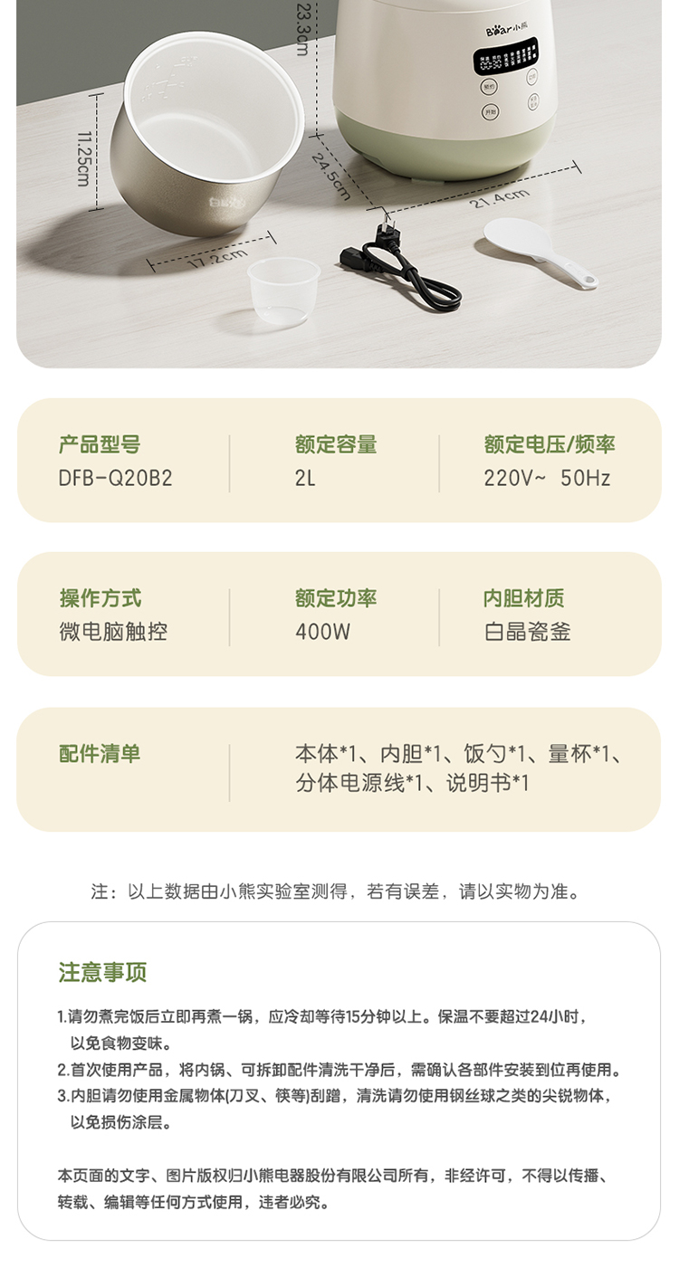 小熊2升电饭煲DFB-Q20B2