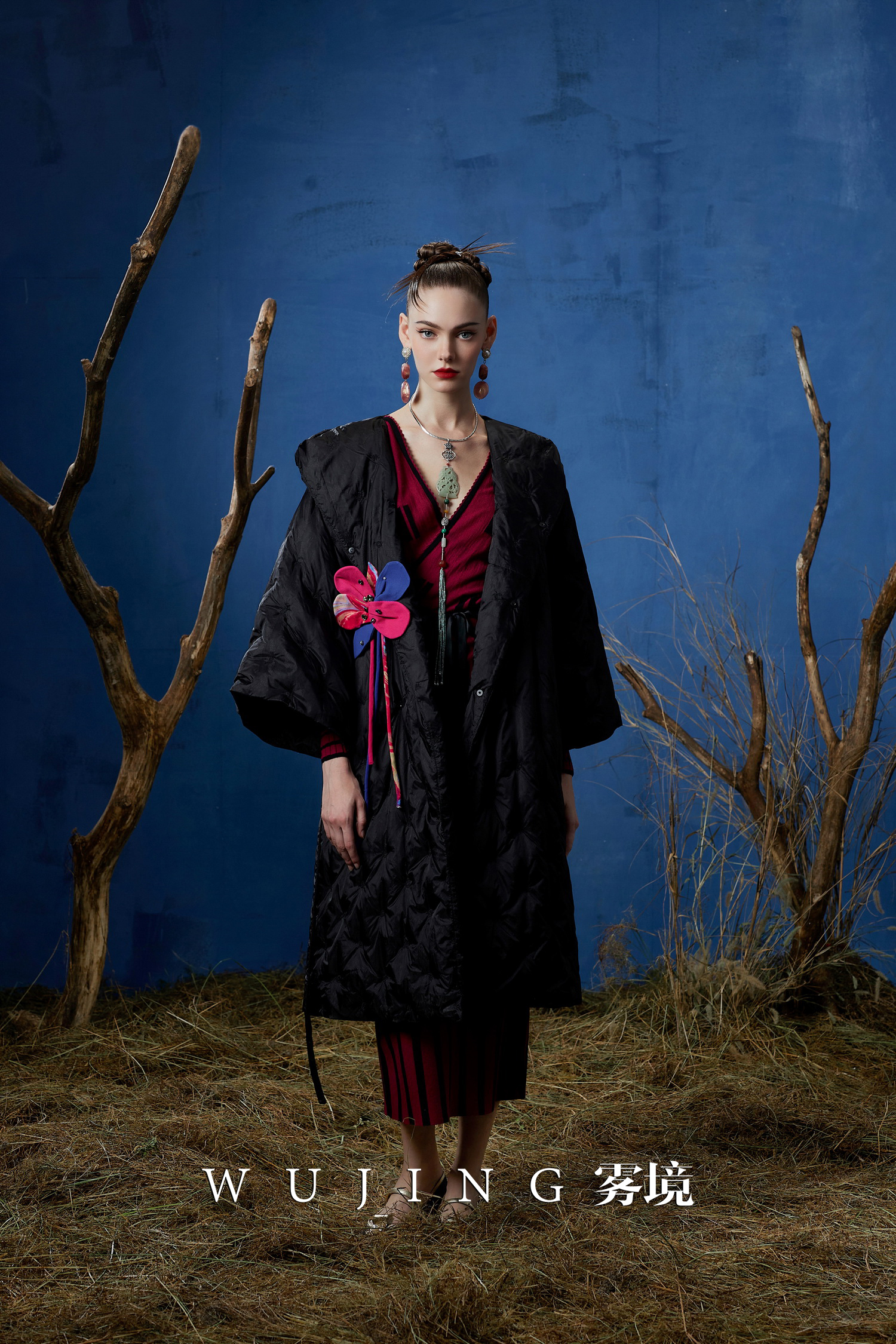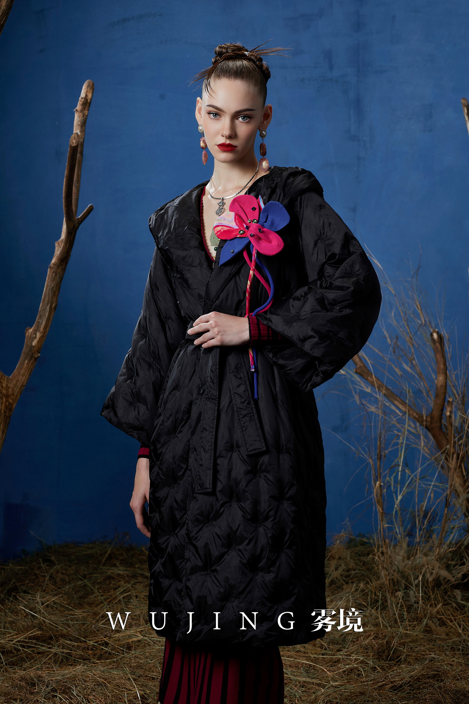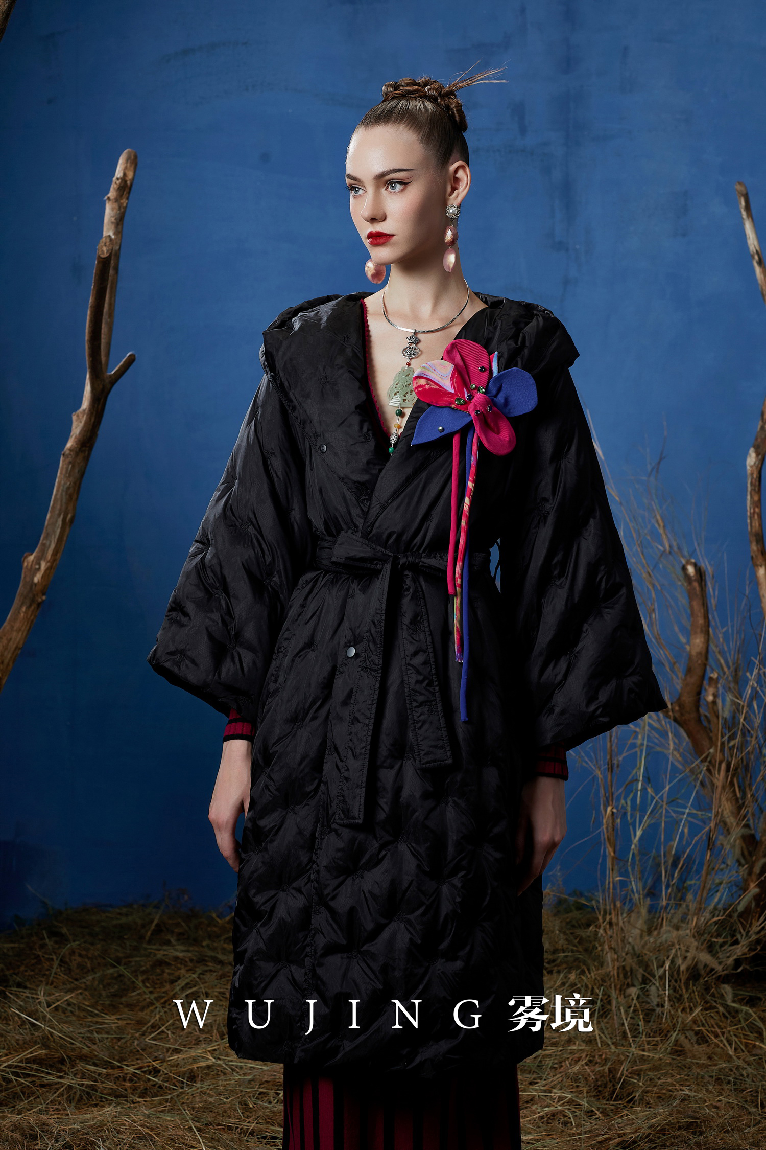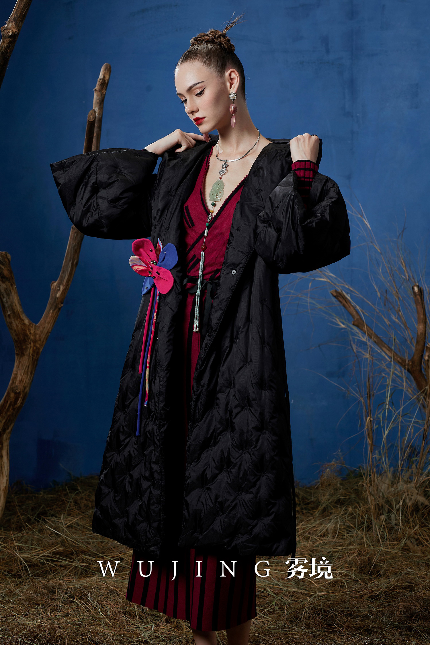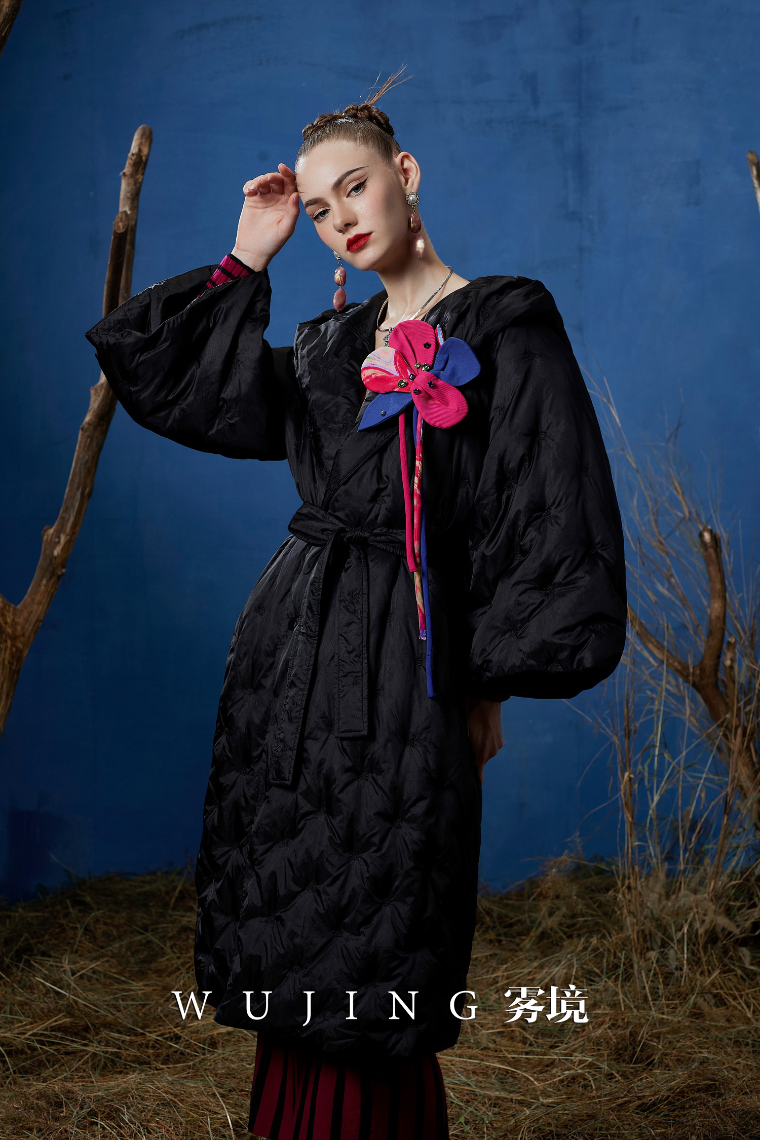 3203007 瑰意成绮 进口高级双层暗纹蕾丝刺绣工艺料(填充90白鸭绒)羽绒服 雾境