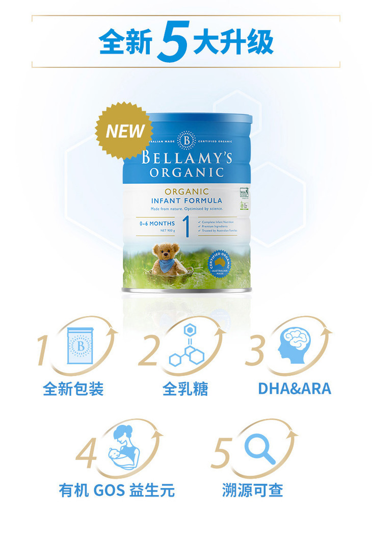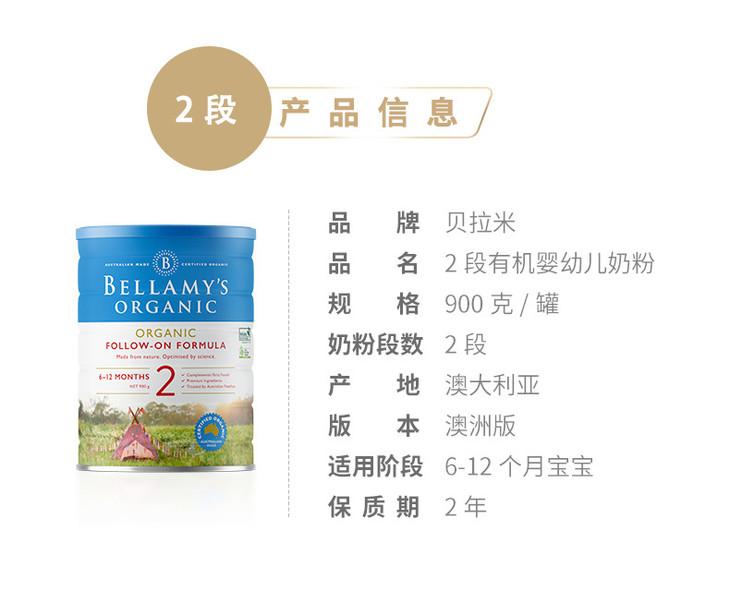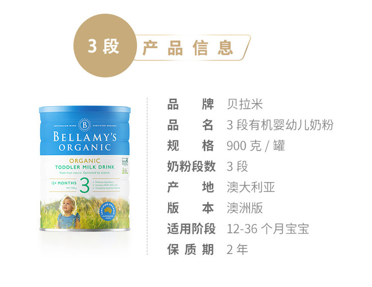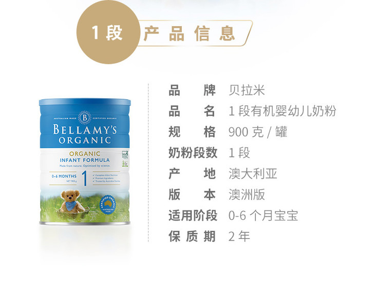 澳洲贝拉米1/2/3/4段婴幼儿配方奶粉900克全程空运直邮
