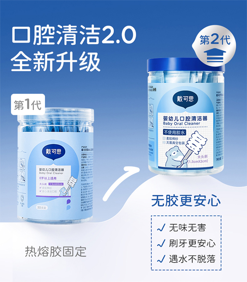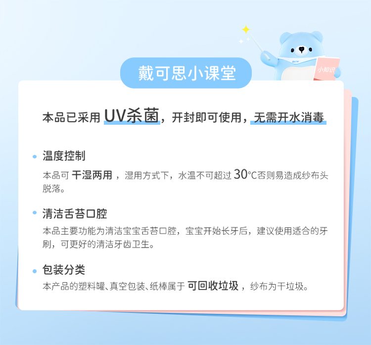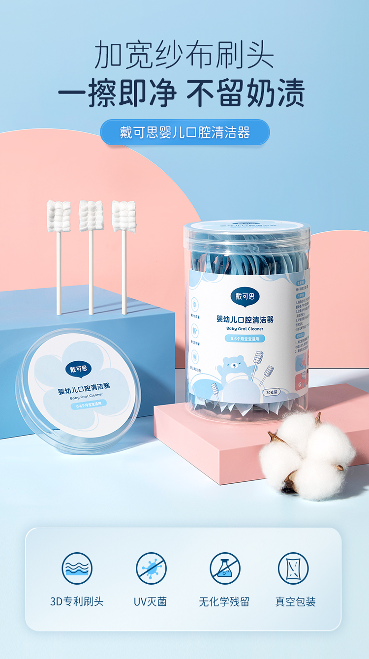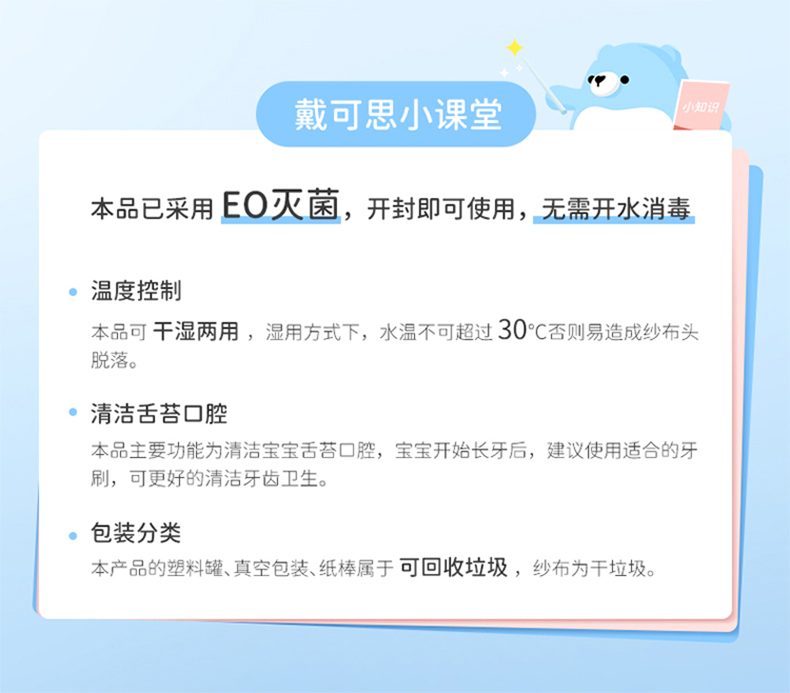 戴可思婴儿口腔清洁器纱布乳牙刷棉棒宝宝刷舌苔清洁神器♥