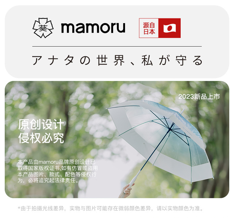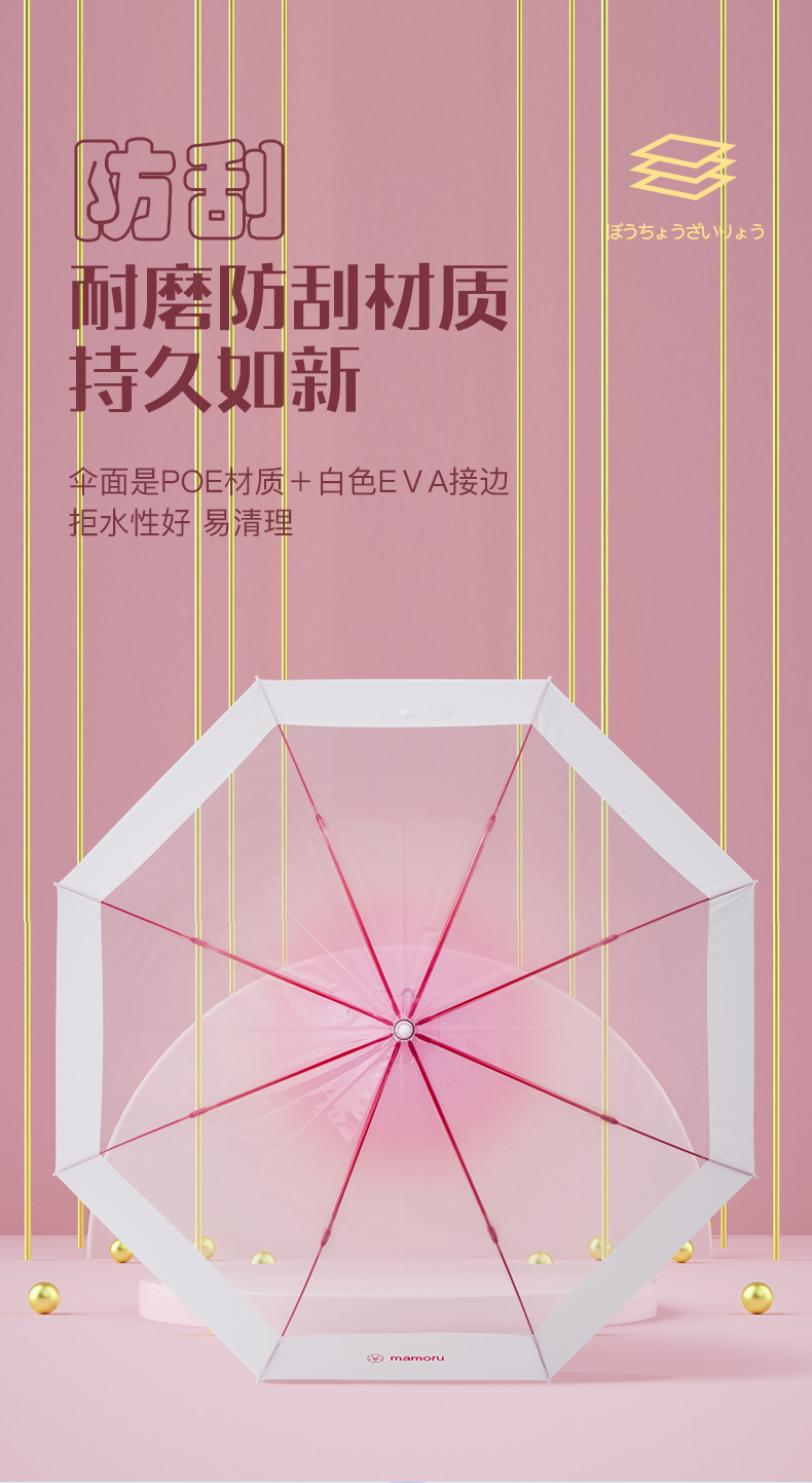 【Mamoru长柄透明渐变雨伞】耐磨防刮 强抗拒水 持久如新