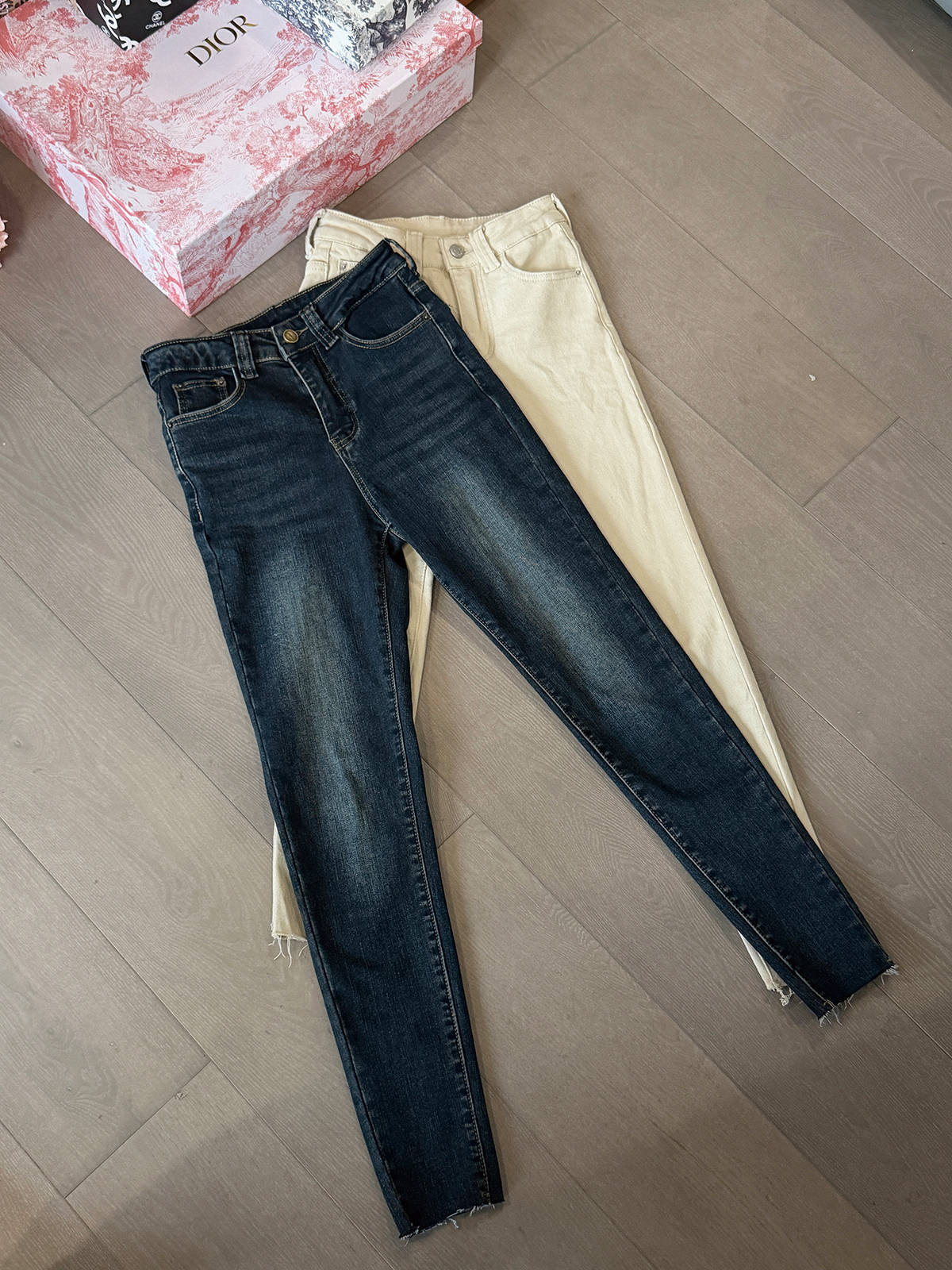 LINCHAOZHANG 3D镭射猫须显腿长纸片人高腰小脚提臀牛仔裤女新款
