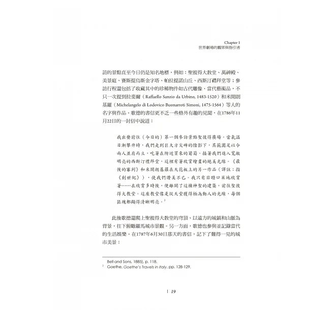 透過各式導覽指引──包含歌德大旅遊後的書信、瓦西的羅馬八日遊規劃、拉斐爾的研究計畫、帕拉迪歐的《羅馬古蹟》和《羅馬教堂》……等等──後世的我們可以置身百年前世界劇場觀眾的視角,理解羅馬城的輝煌!
