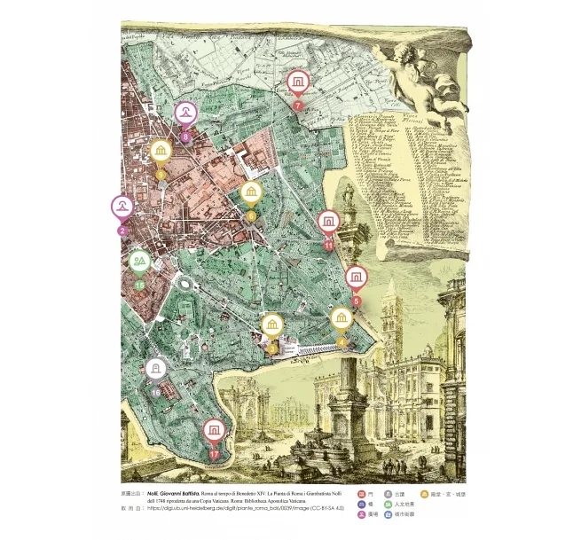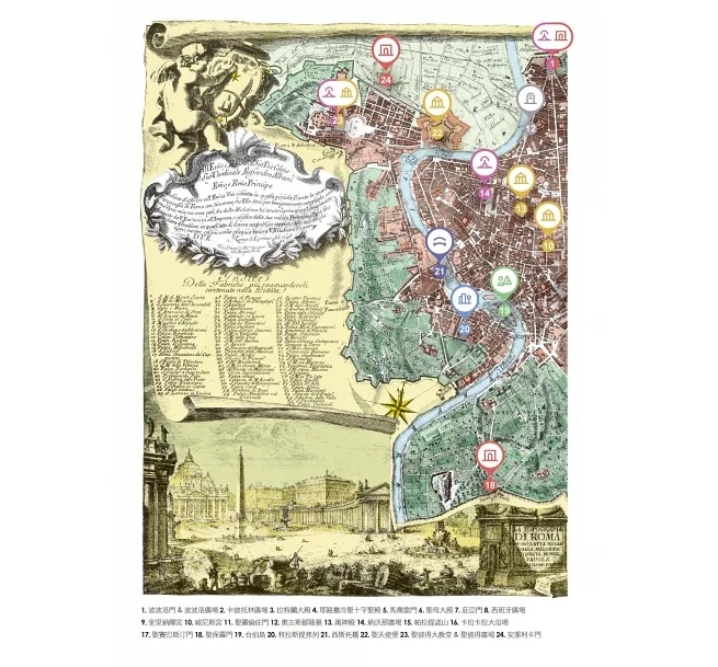 ★一部跨越歷史‧宗教‧藝術‧建築‧社會領域的綜合探討,跨頁羅馬城大地圖、上百幅版畫與導覽指引原圖,一字一句、一幀一幅,都帶你領略穿越時空的羅馬城!