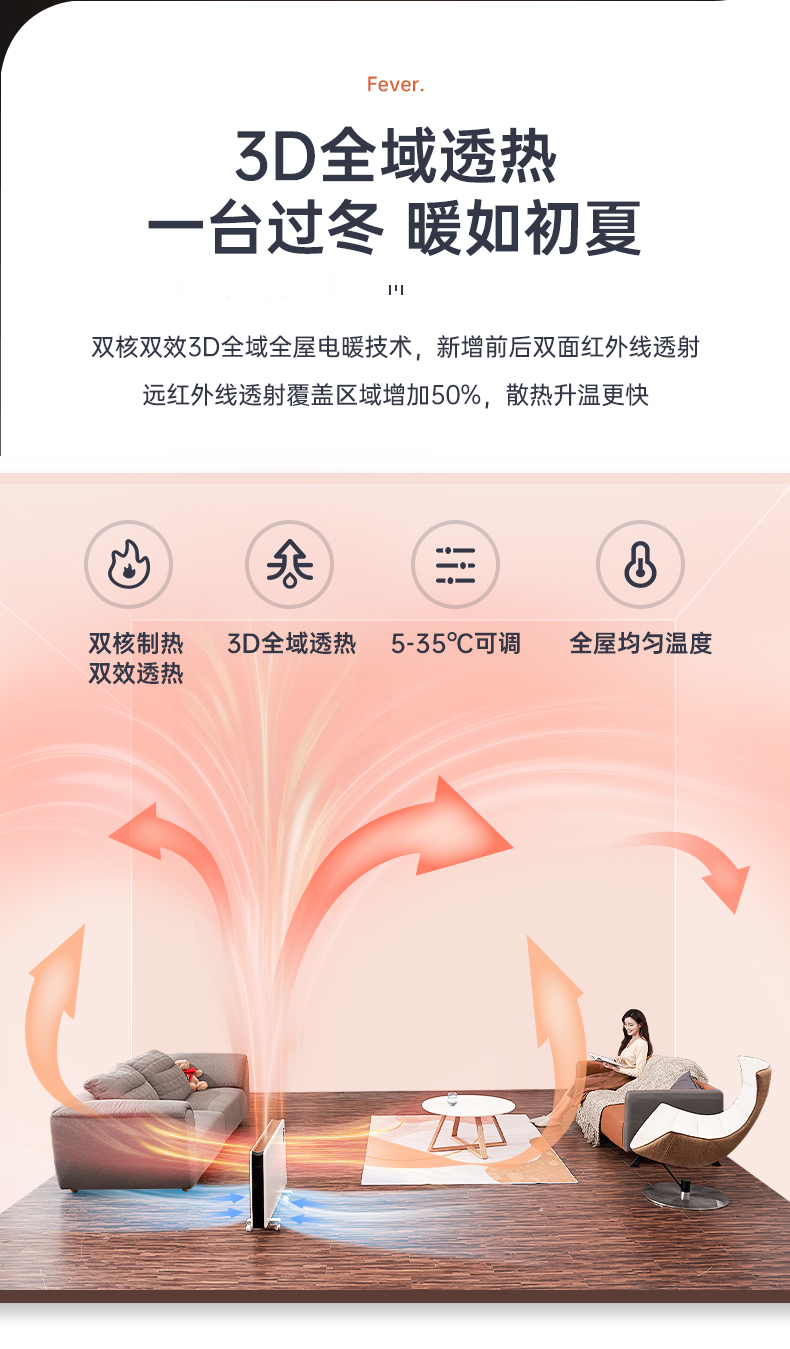 百斯腾双核制热居浴两用微分变频节能全屋大面积升温全域透热取暖器S10