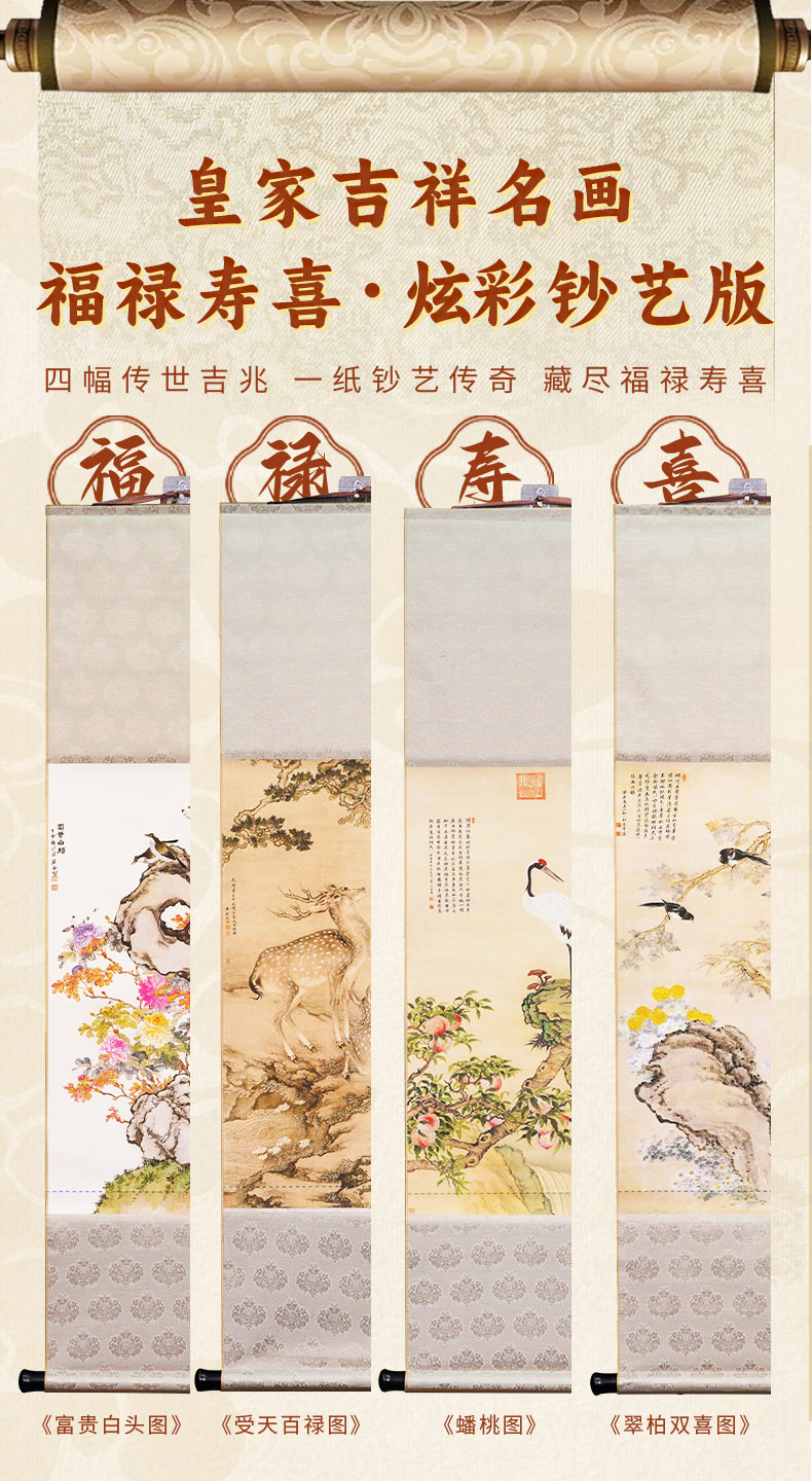 《皇家吉祥名画》福禄寿喜・炫彩钞艺版 荣宝斋·荣宝燕泰出品 钞券纸复刻 炫彩防伪