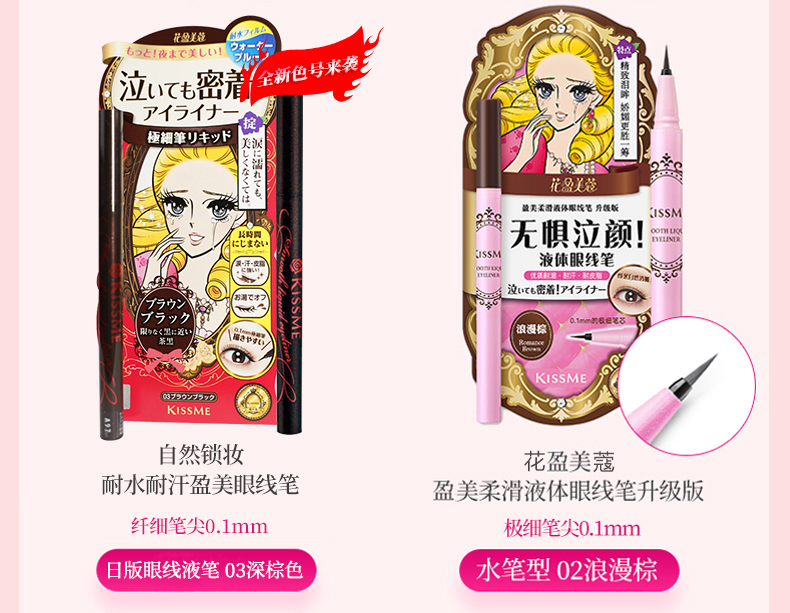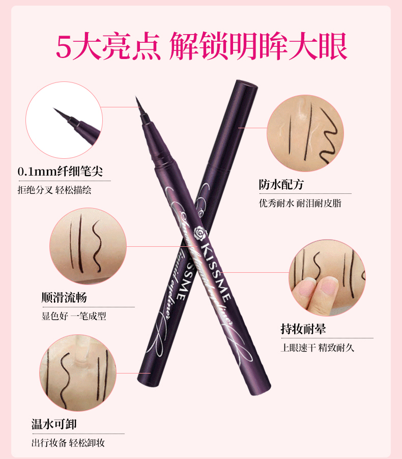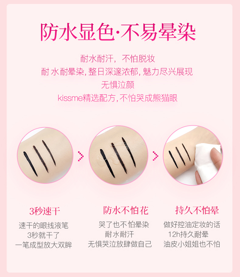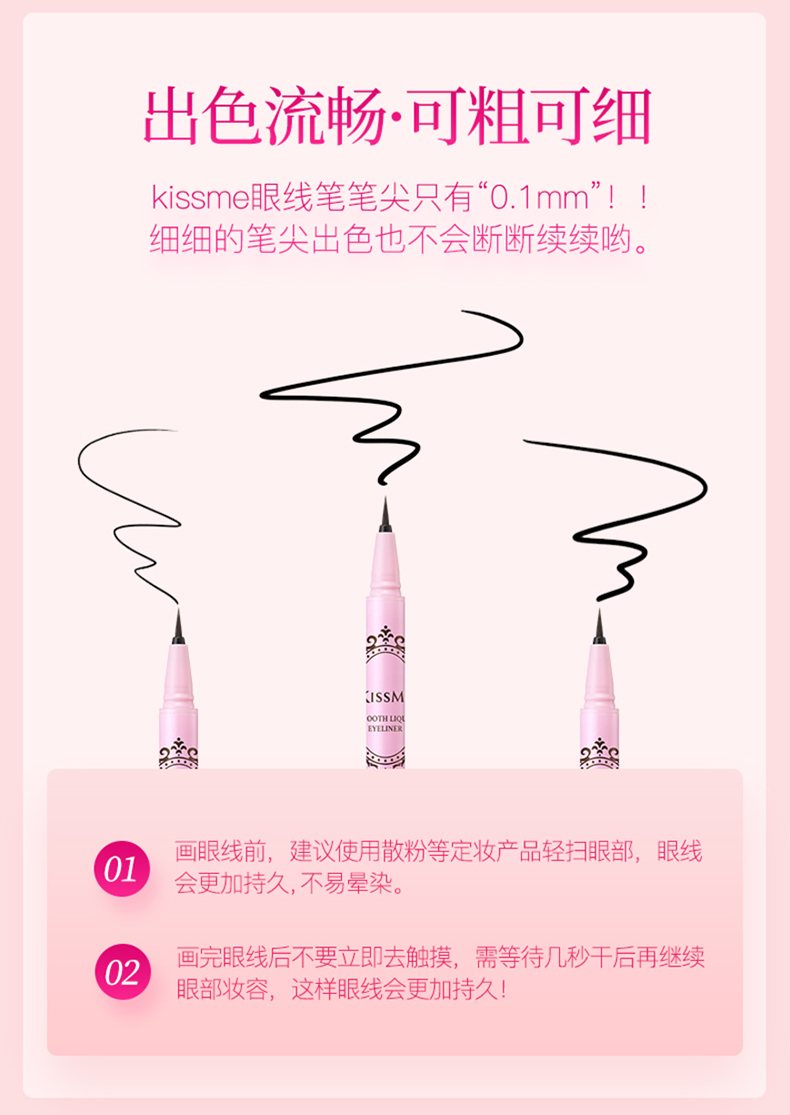 日本kissme眼线液笔持久极细日版黑色眼线笔 耐水不易晕染笔芯纤细