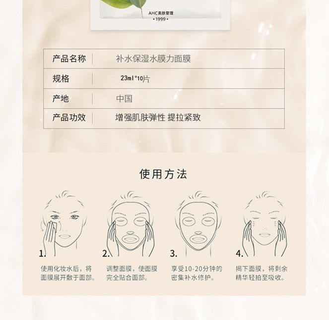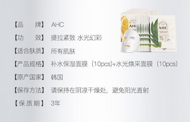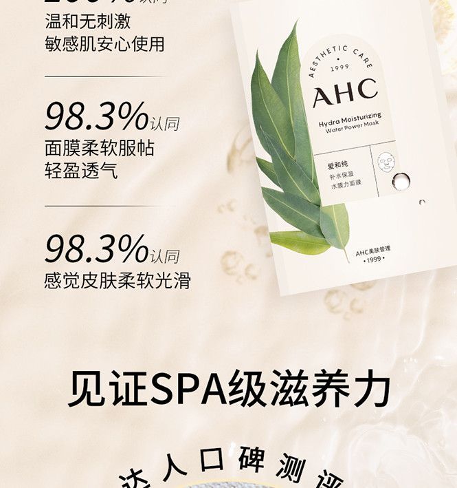 【预售 急单慎拍】AHC长效保湿水润补水男女轻盈透气水膜力面膜