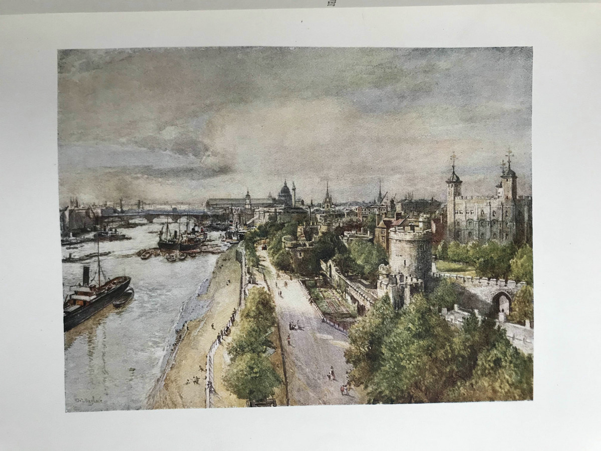 1908年 伦敦塔风物志 英国画家、插图家约翰·弗利洛夫22幅彩色插图 漆布精装大32开