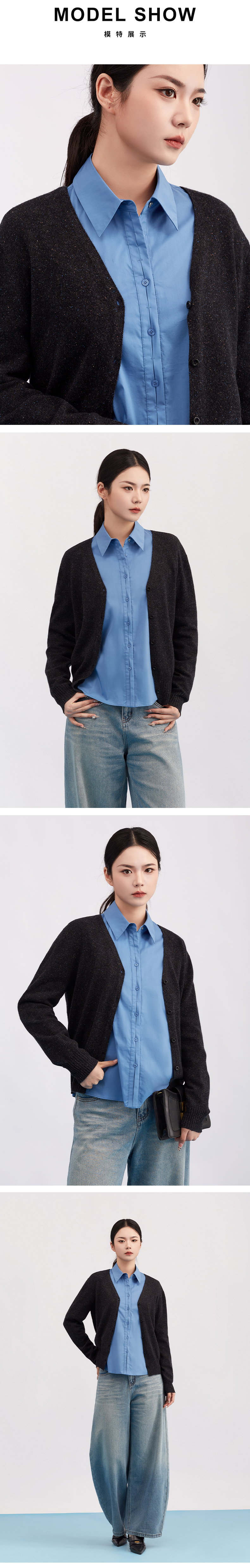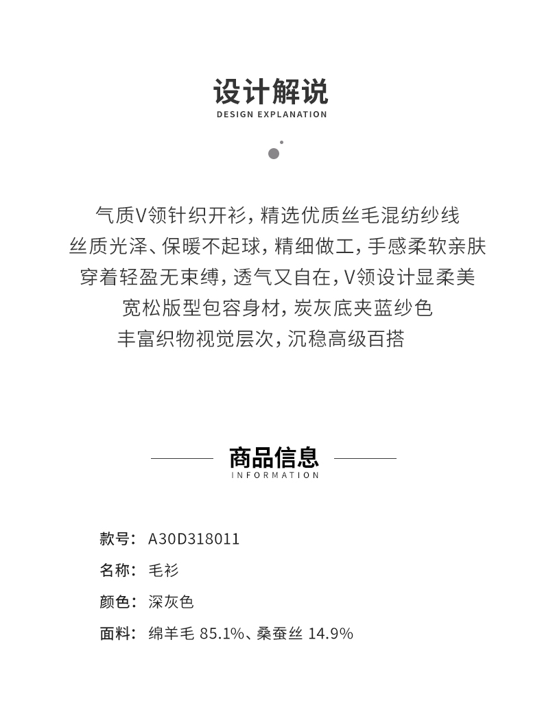 【商场同款】阿菁娜春季新款高级灰蓝纱开衫炭灰底夹蓝纱层次感V领A30D318011