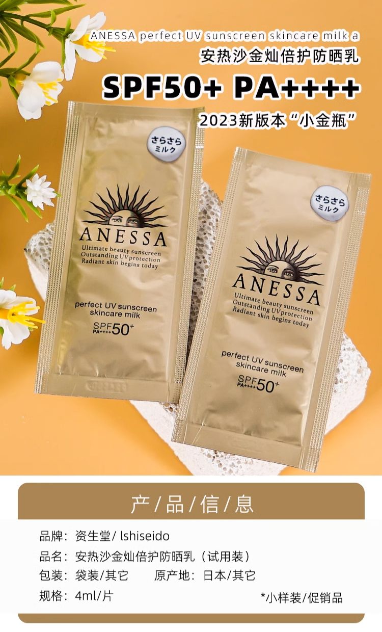 【爆款超低价预售 急单慎拍】资生堂安热沙水能户外防晒乳4ml/片 小样小金瓶防晒露防晒霜