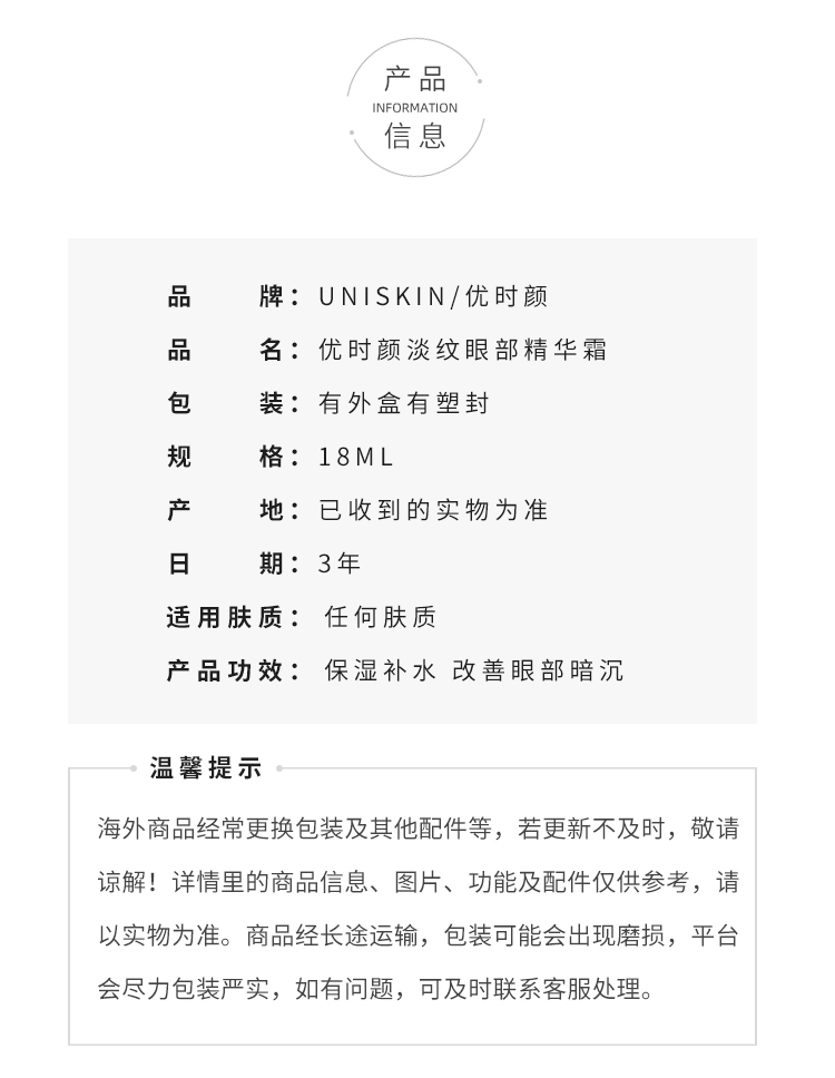 UNISKIN/优时颜 微笑眼霜 新款3代 淡化细纹补水保湿 18ML【CDF】