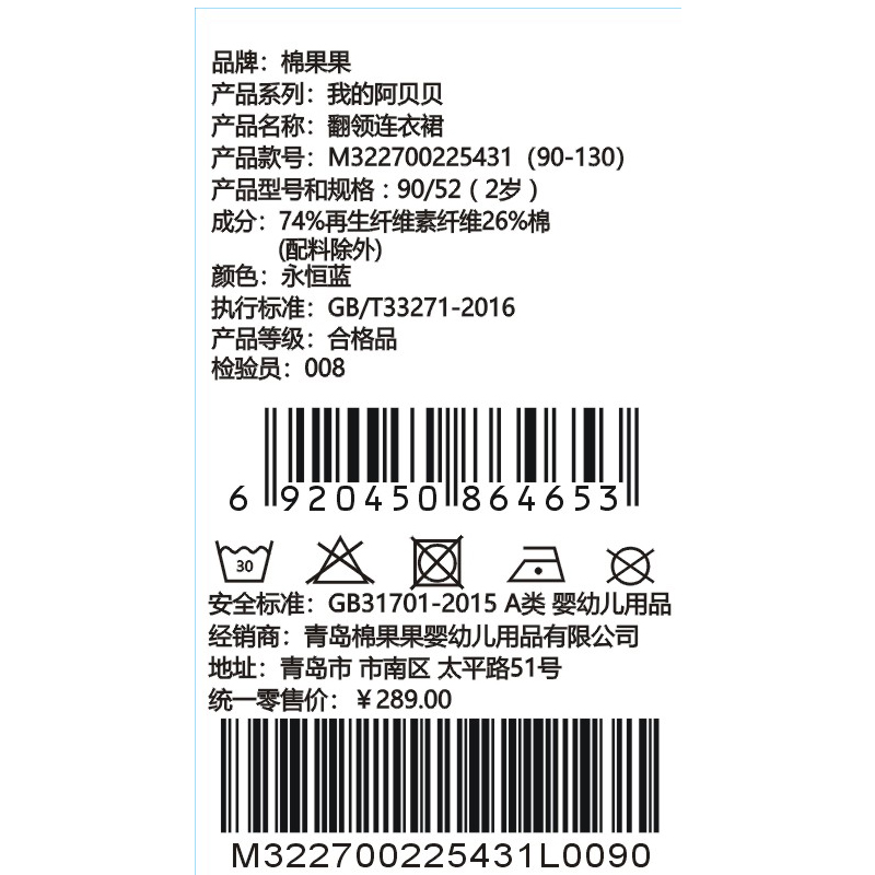 | 裙长 | 48.5 | 53 | 57.5 | 62 | 66.5 |