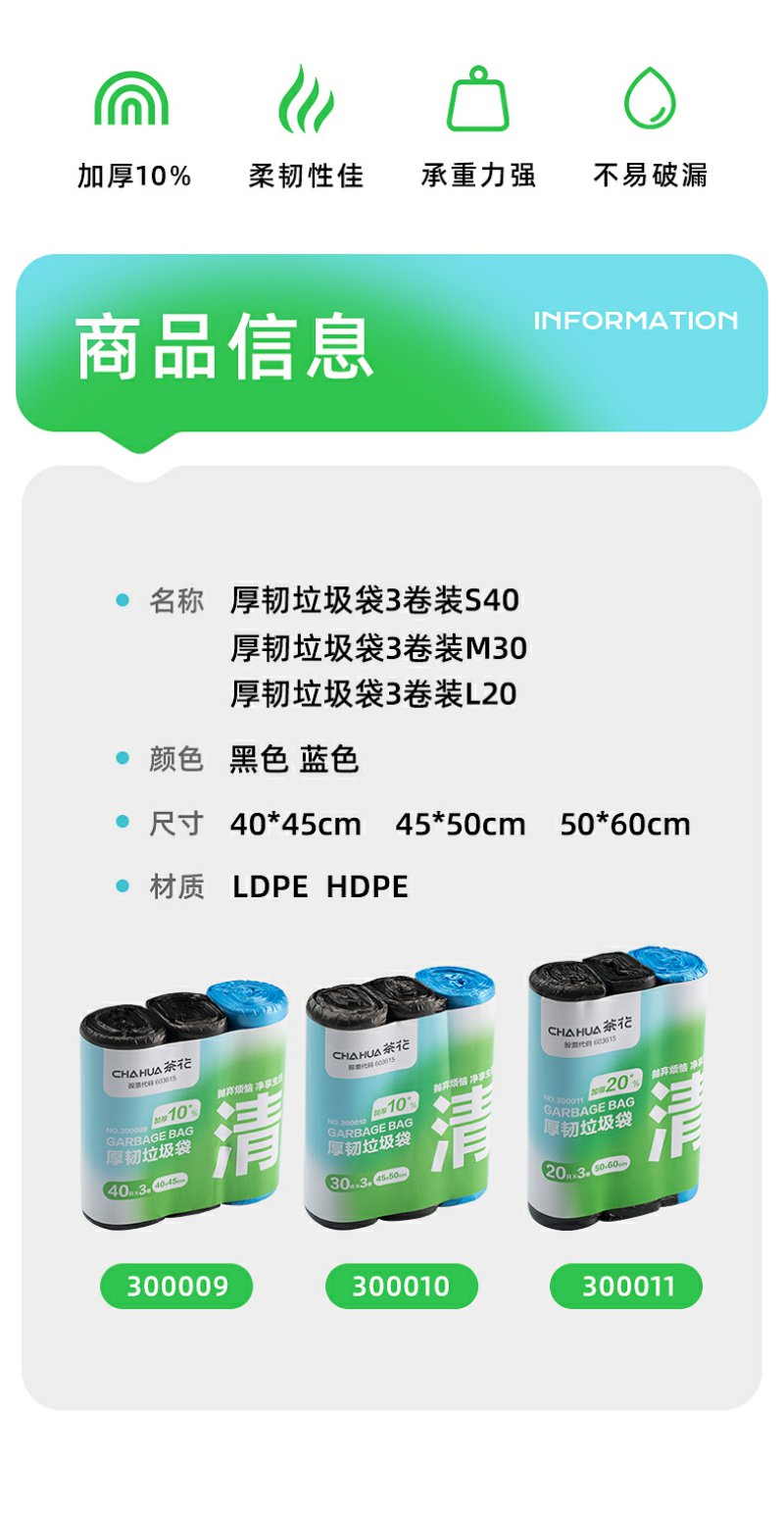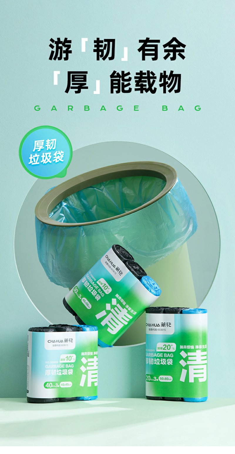 【茶花】平口垃圾袋加大特厚厨房专用不易破