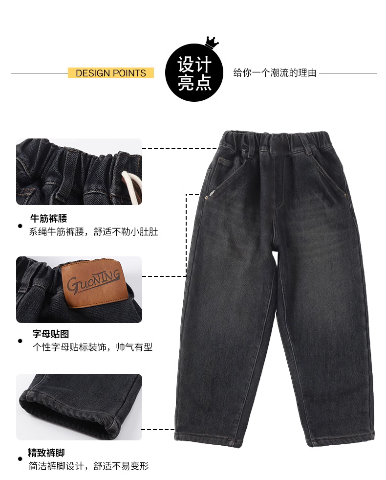 儿童牛仔裤春季新款儿童裤子中大童长裤休闲运动裤男孩潮春秋季120-170cm