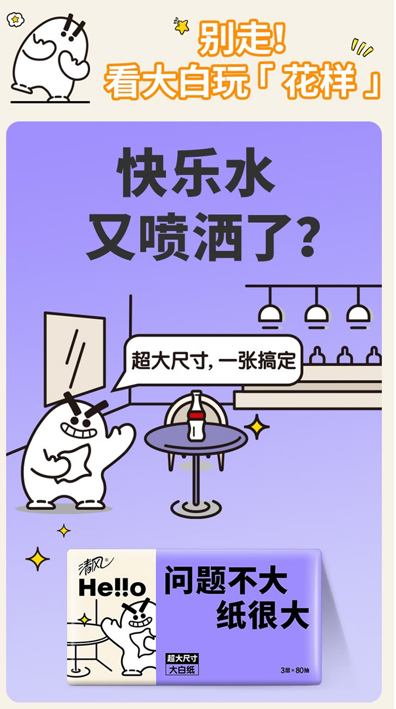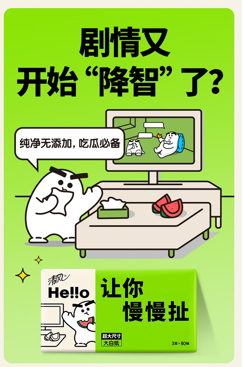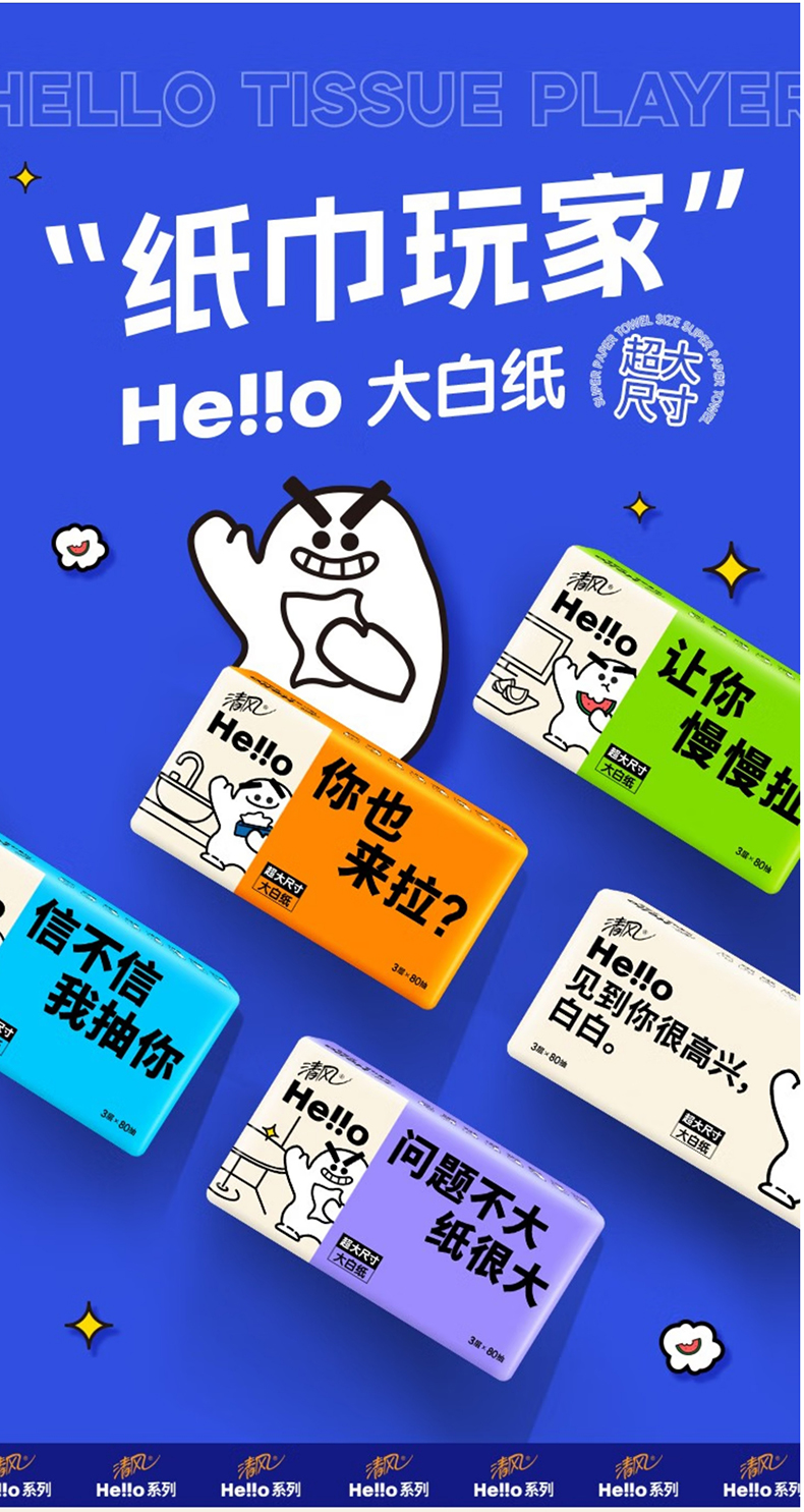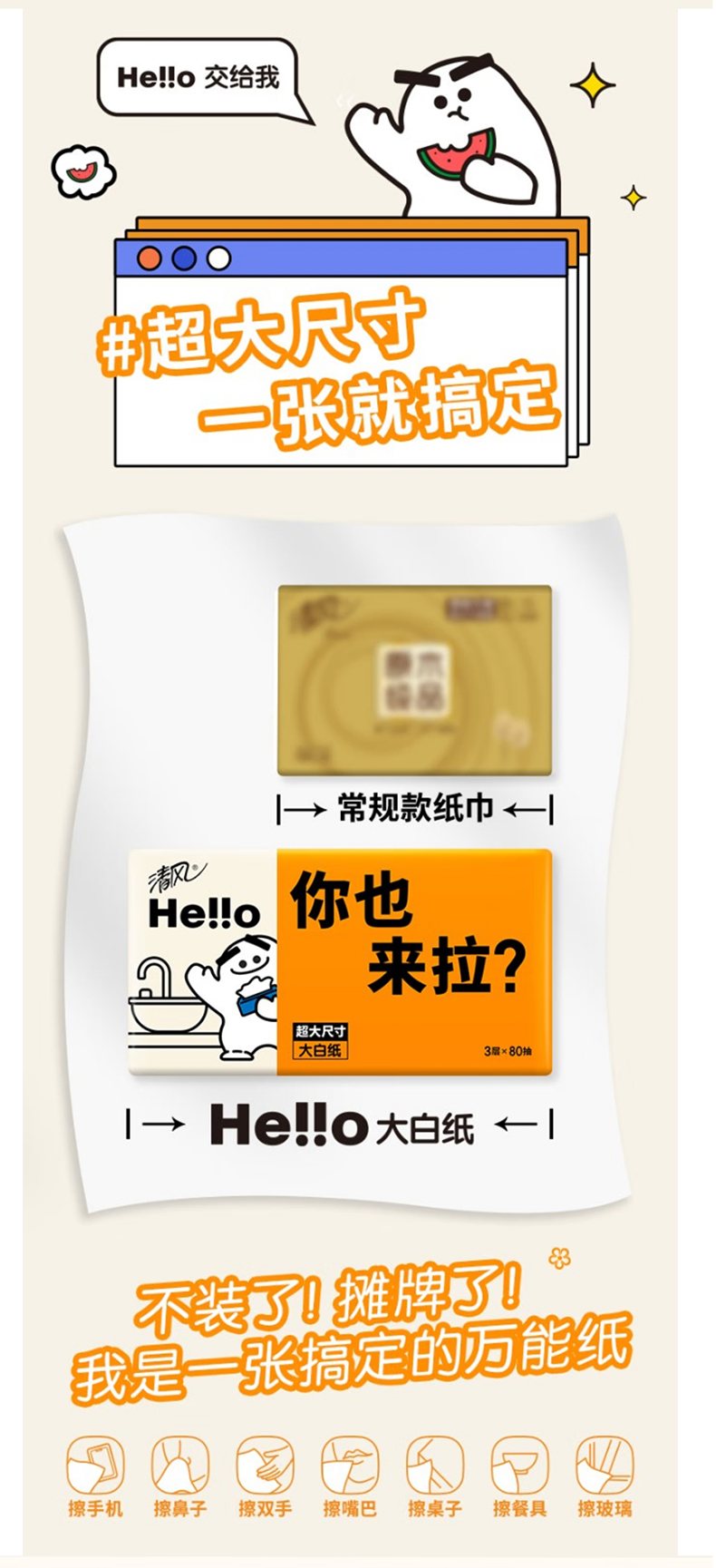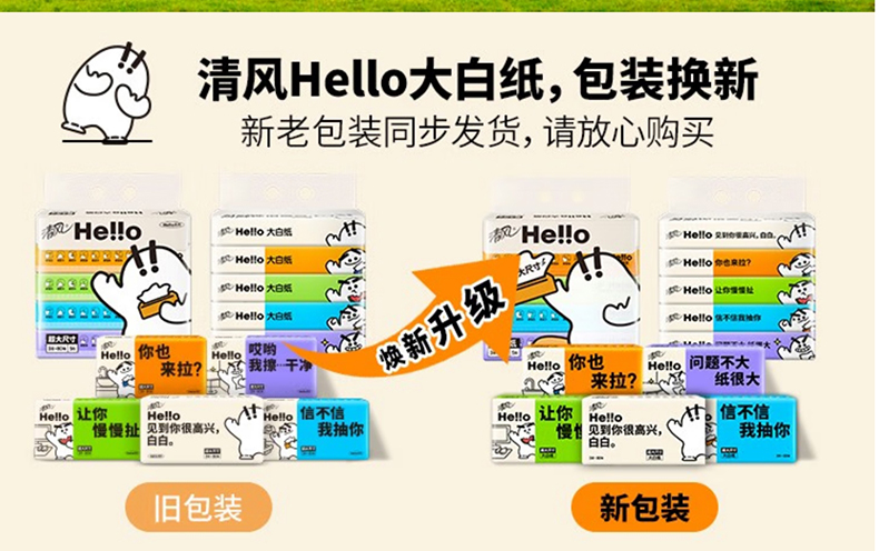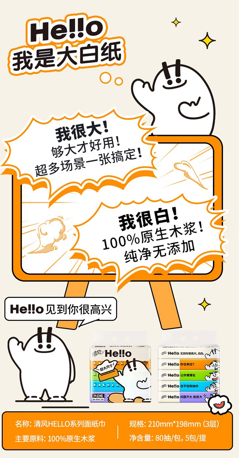 清风Hello抽取式超大号面巾纸3层80抽10包 (5包/提*2提)