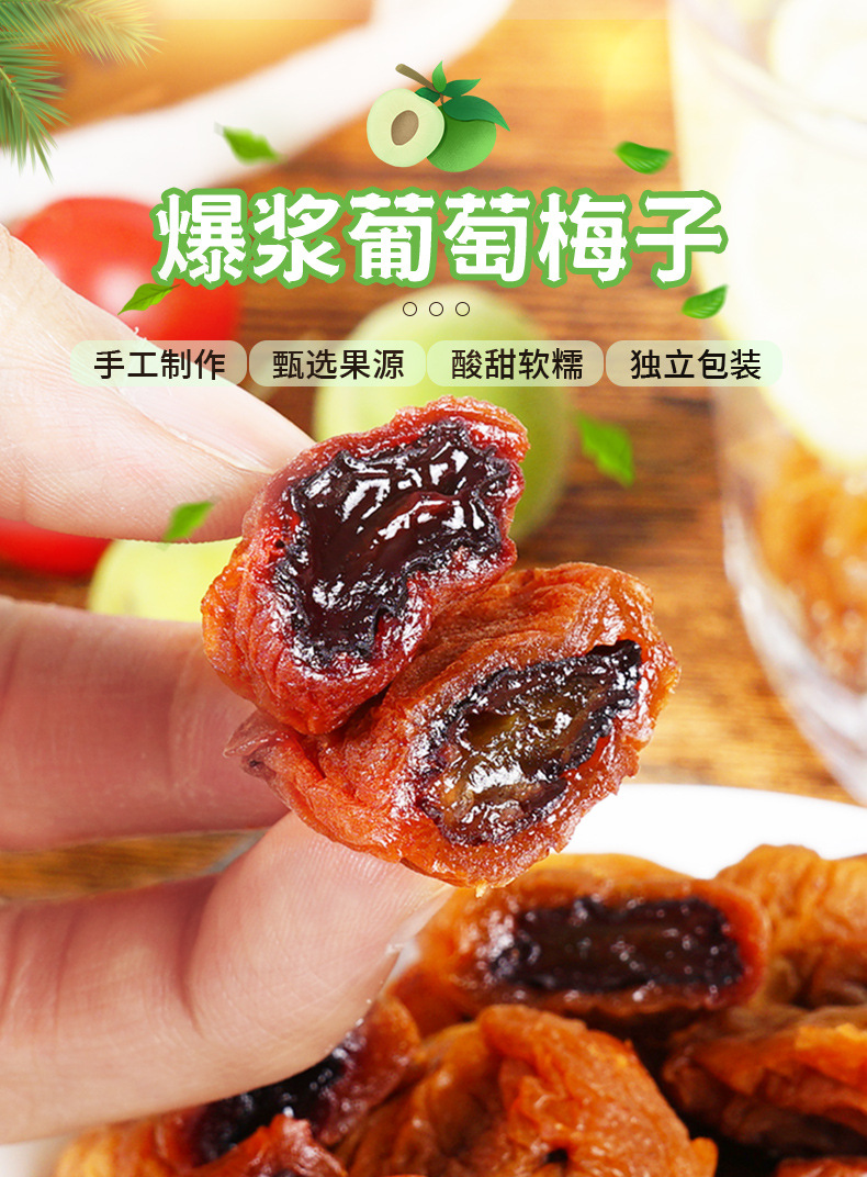 【酸酸甜甜一口‘’爆浆‘’葡萄梅子】开胃爆浆葡萄梅子夹心葡萄青梅果干,独立包装防潮锁鲜,高端零食蜜饯果脯网红解馋食物QQ