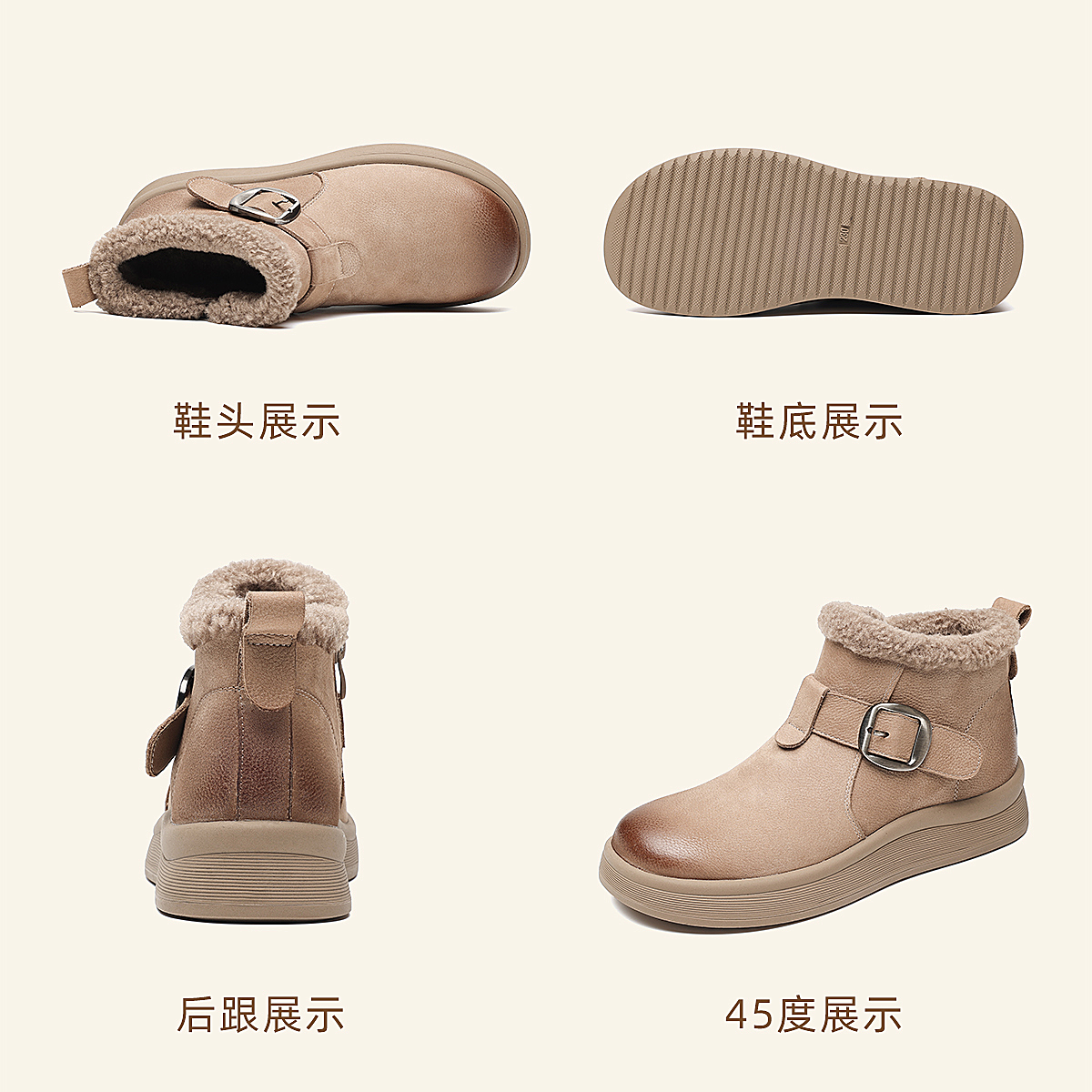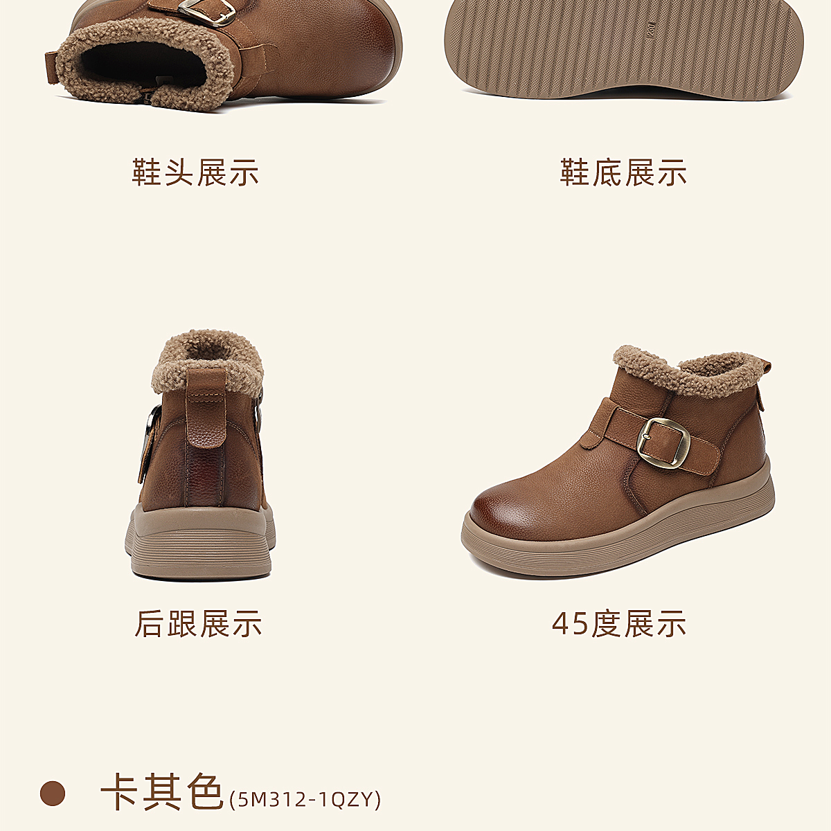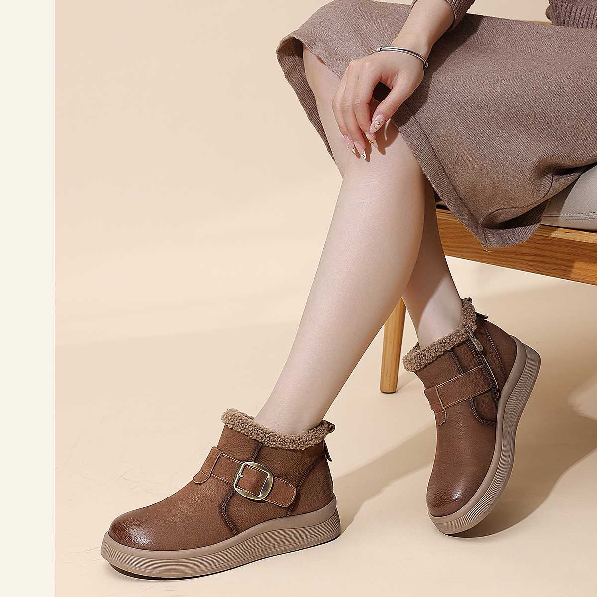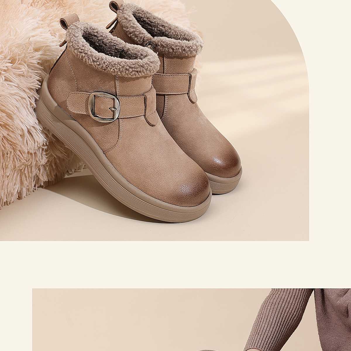 真皮加绒雪地靴女冬季保暖毛绒短靴软底棉鞋5M312-1QZY