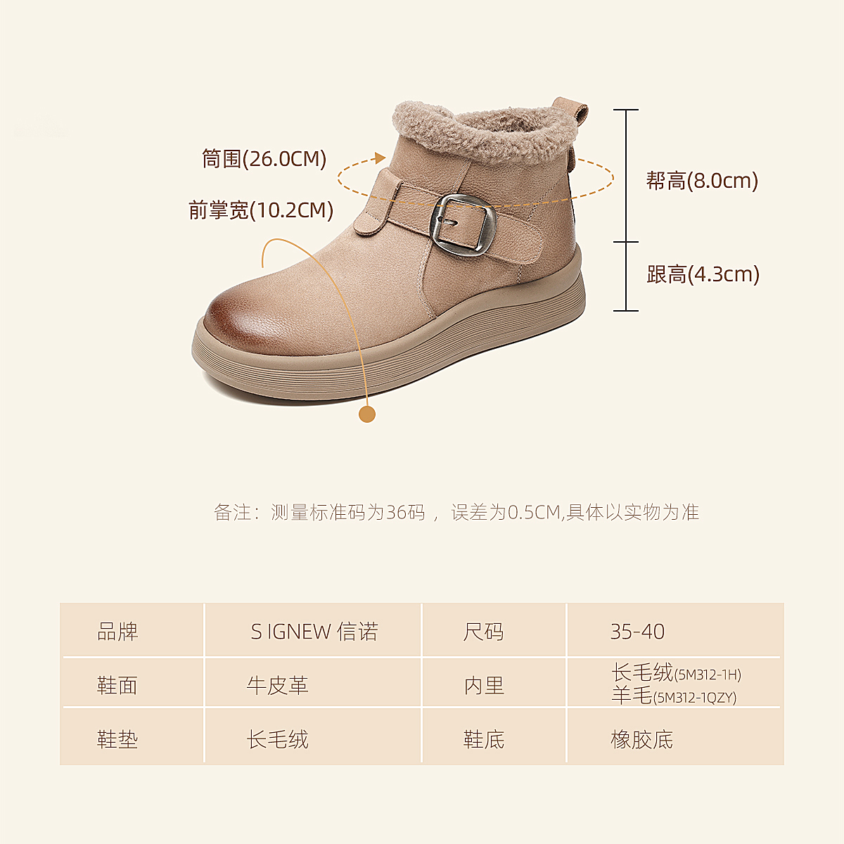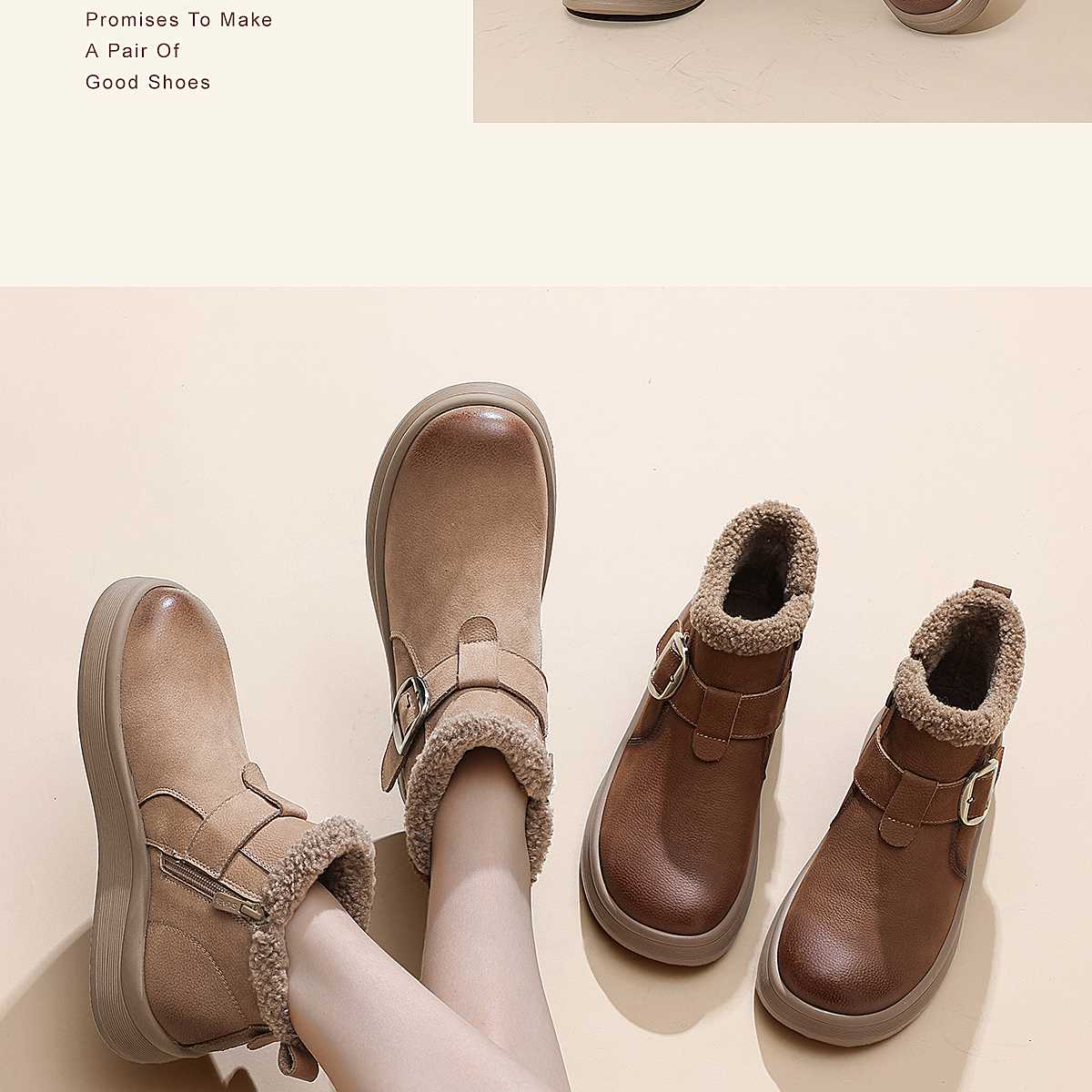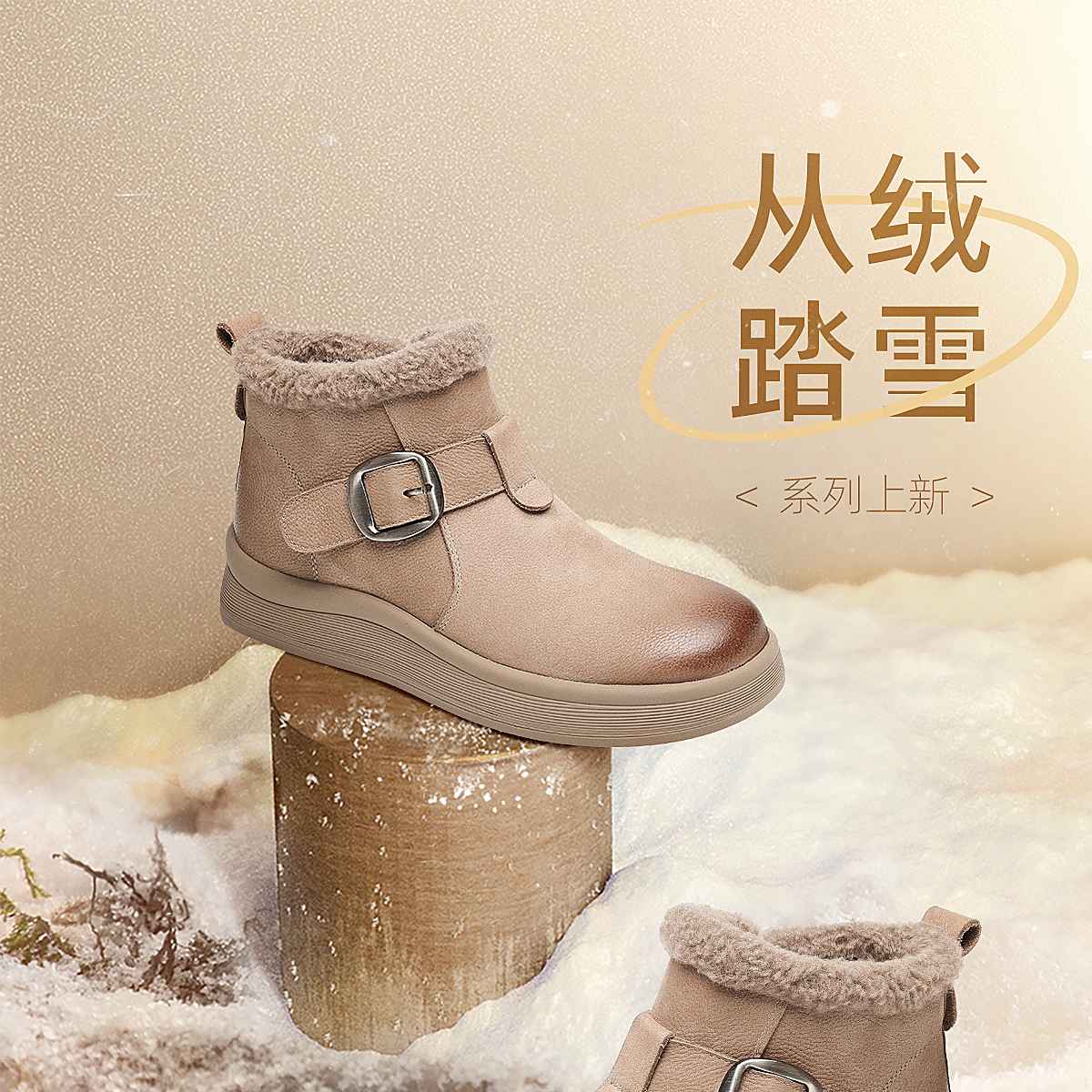 真皮加绒雪地靴女冬季保暖毛绒短靴软底棉鞋5M312-1QZY
