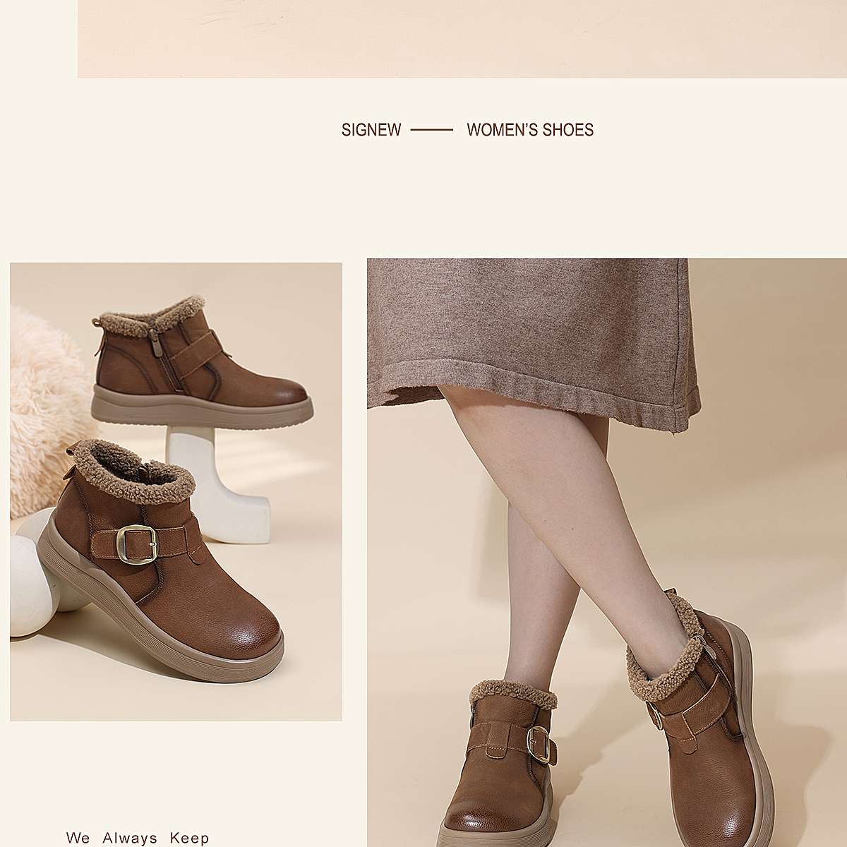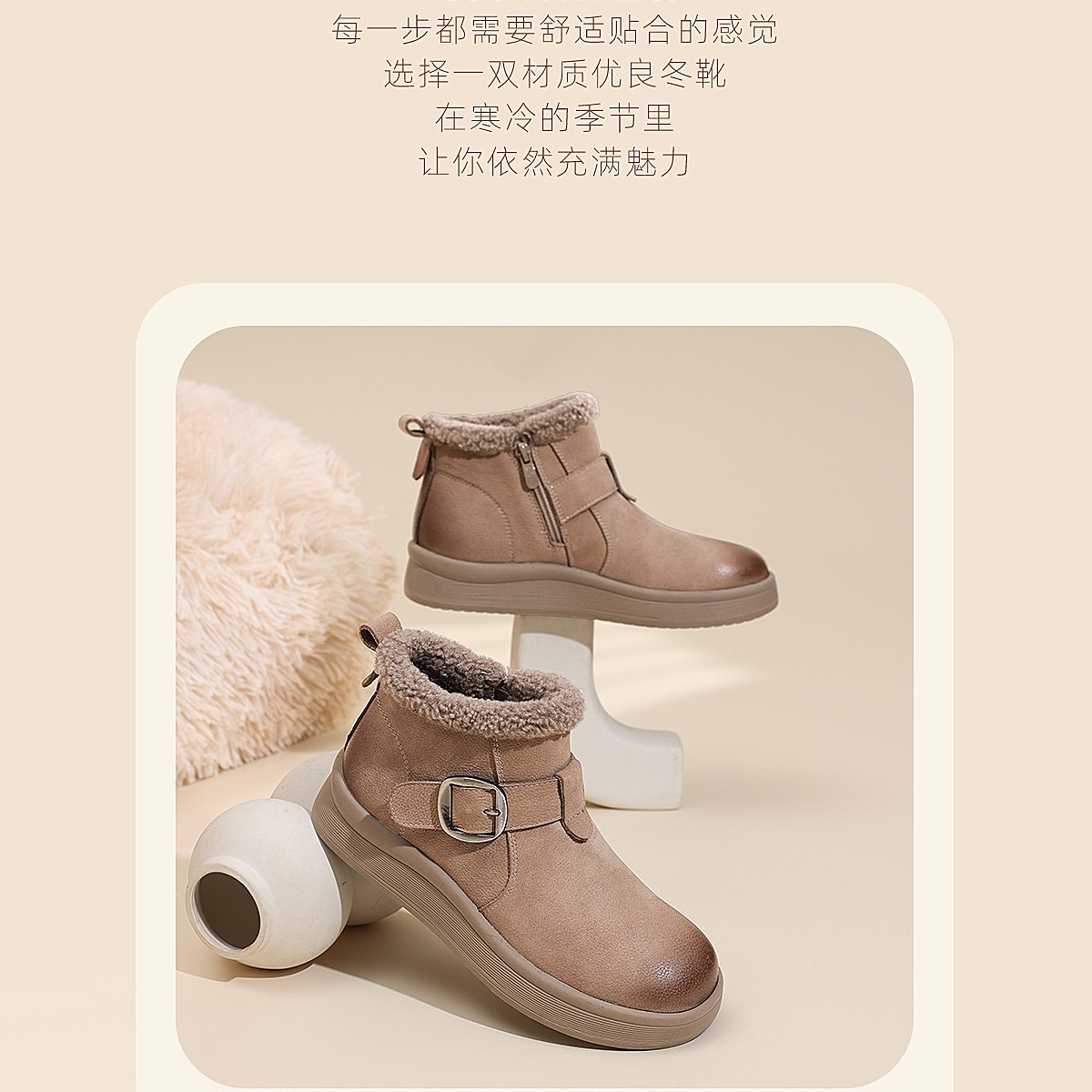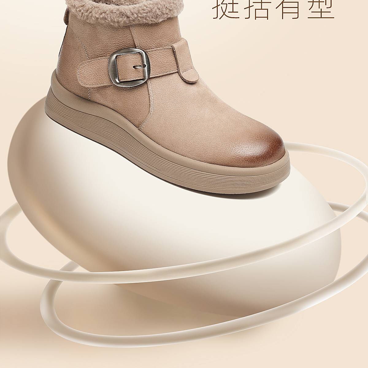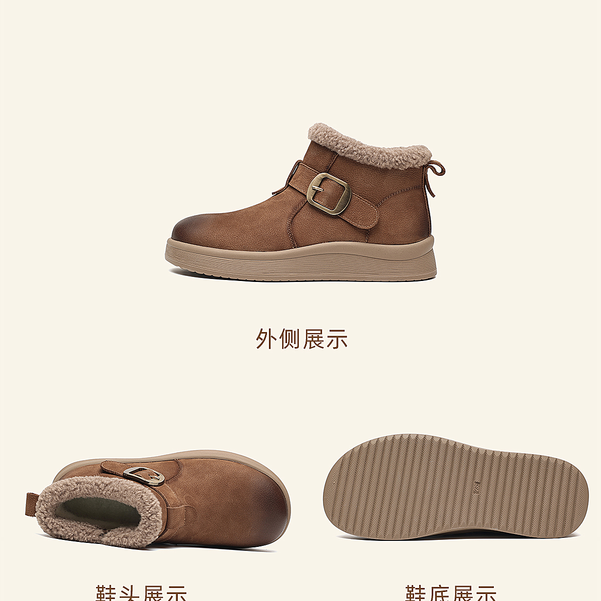 真皮加绒雪地靴女冬季保暖毛绒短靴软底棉鞋5M312-1QZY