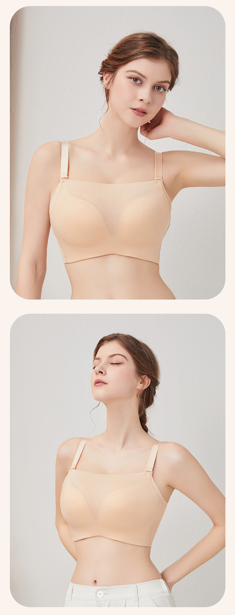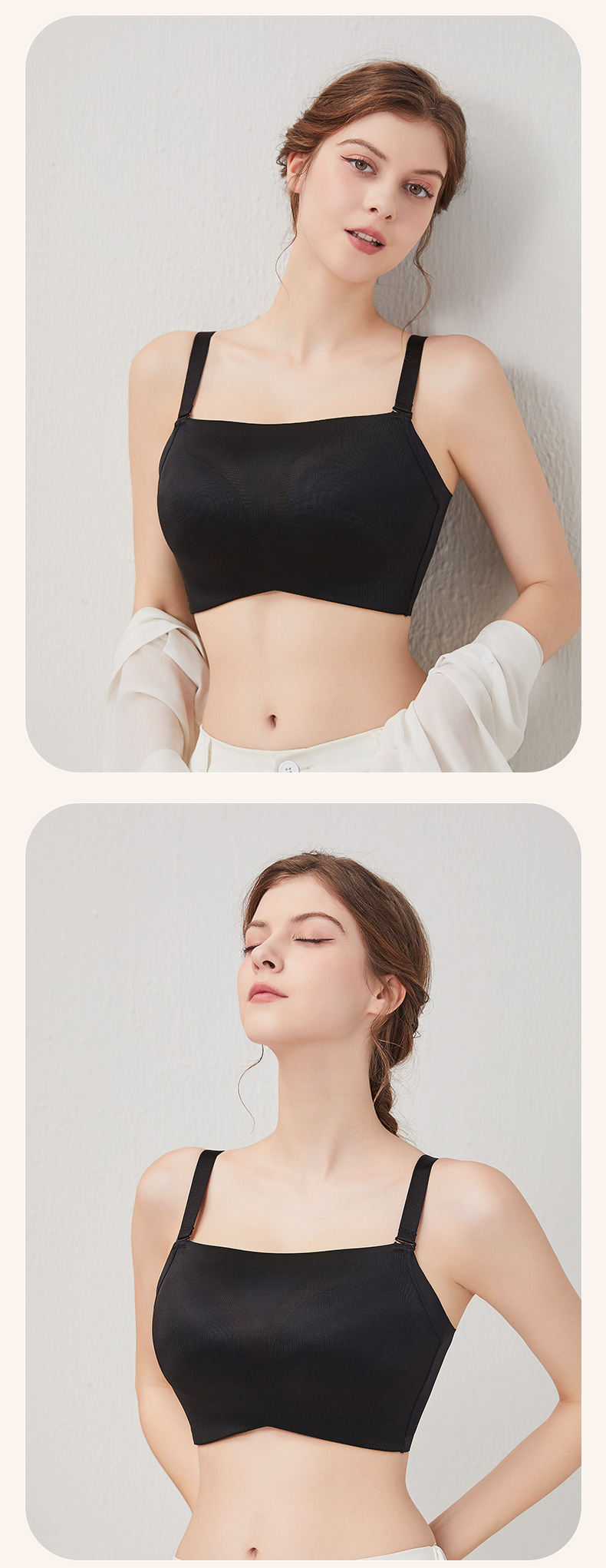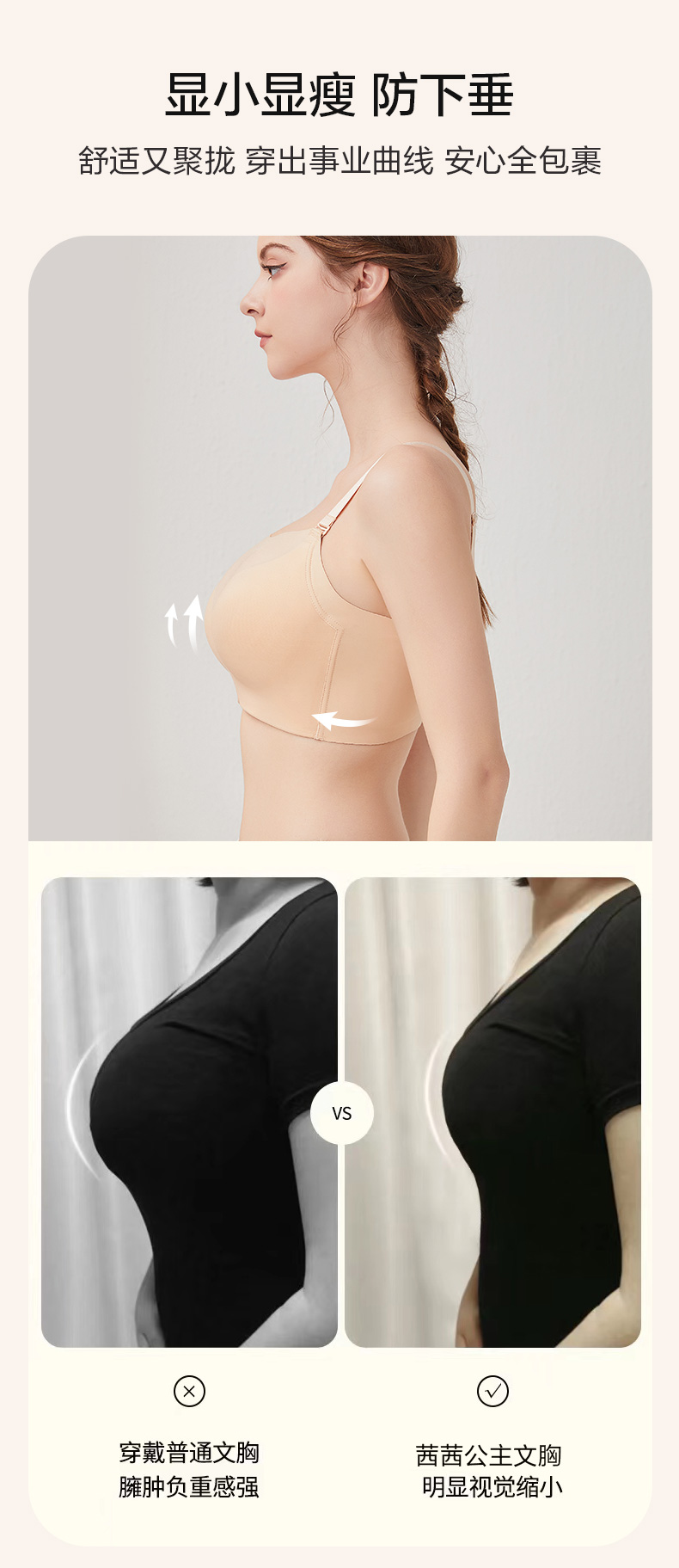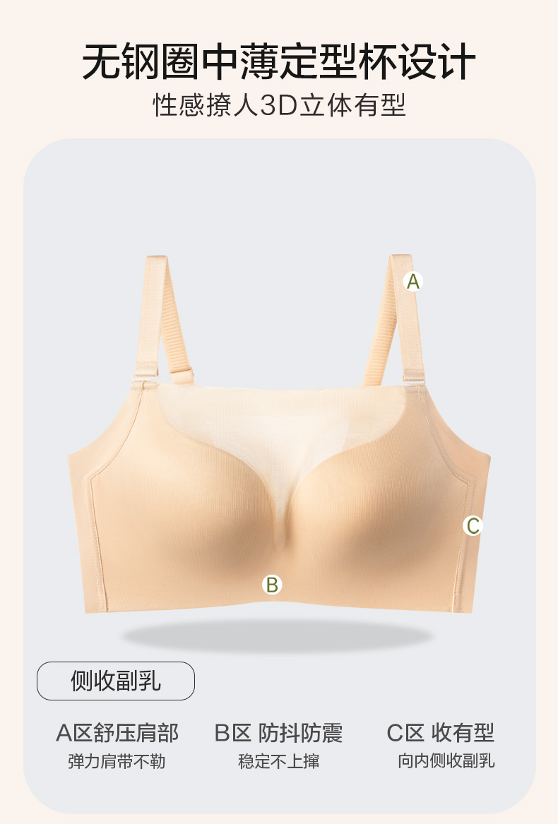 闲暇时光聚拢文胸 抹胸防走光 3D立体悬浮杯光面无痕 轻盈无钢圈一穿就聚