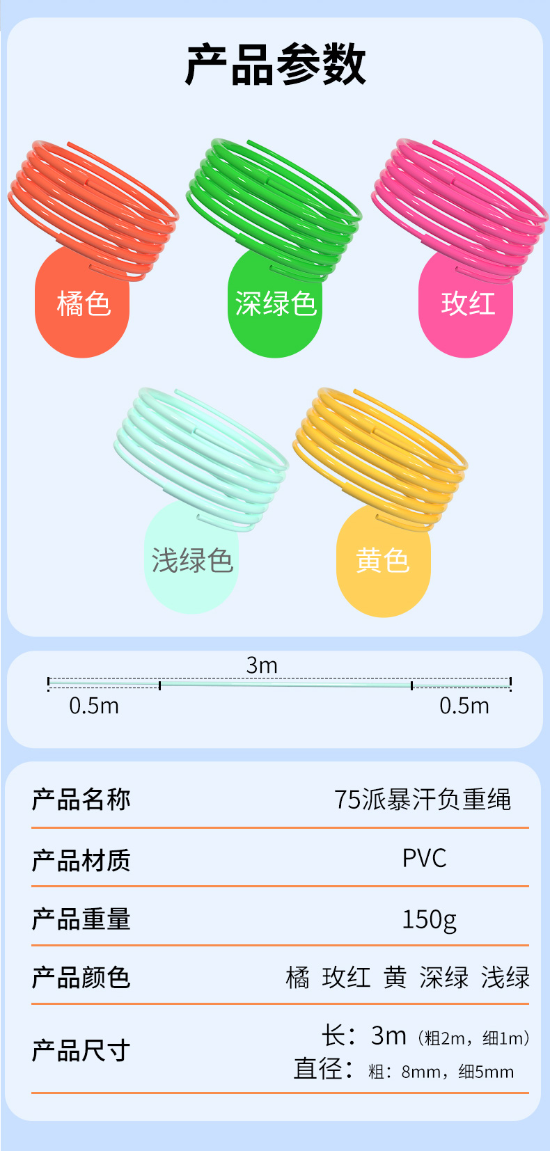 75派负重绳适配75派全系列跳绳手柄PVC实心绳(重量150克)/PVC包钢丝绳(重量125克/105克)