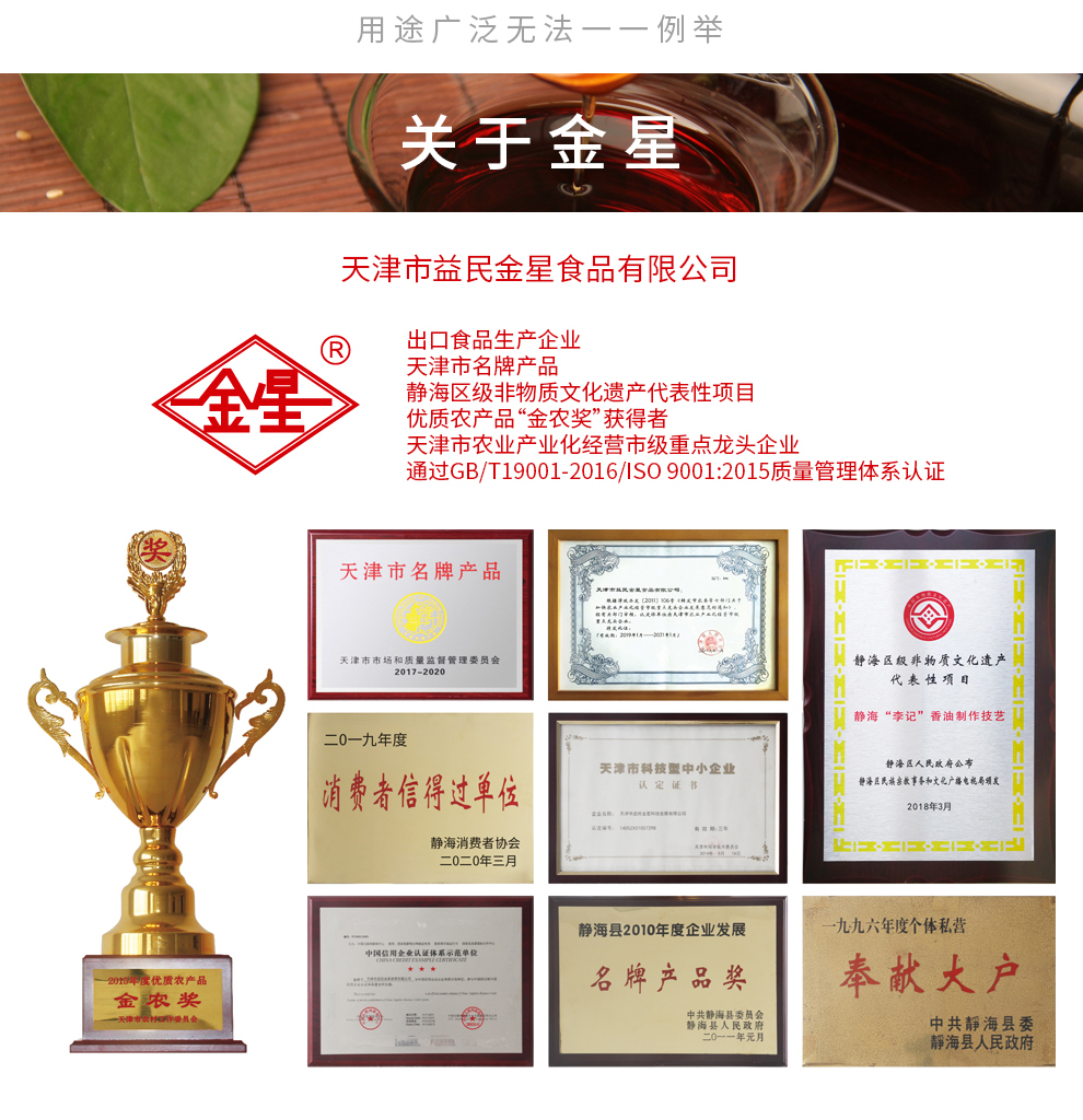 津农精品天津静海区金星小磨香油250ml*2瓶装