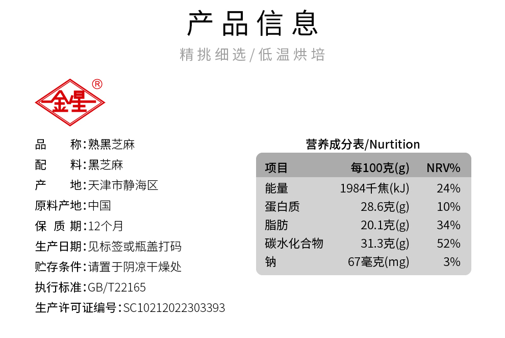 津农精品天津静海区金星 黑熟芝麻160g*2罐