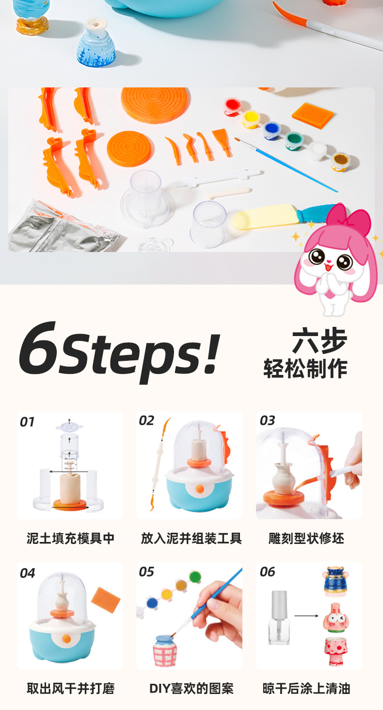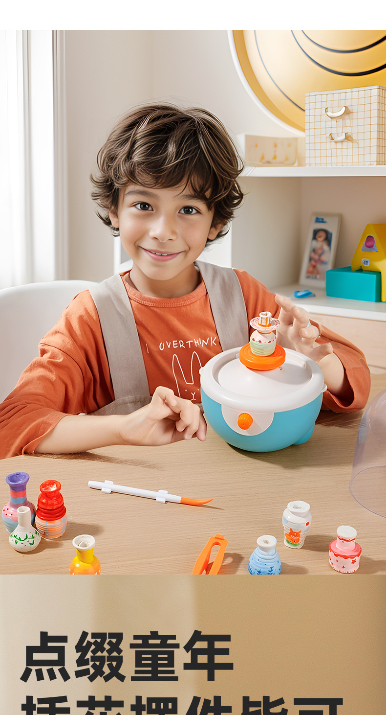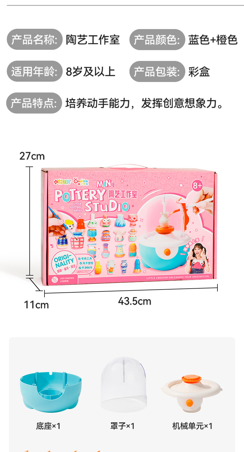 【培养艺术感知 手脑共用玩不停】小伶玩具儿童电动陶艺机 益智手工diy假期玩具 缤纷造型 尽情发挥创意 多种工具 简单易上手 陶艺工作室
