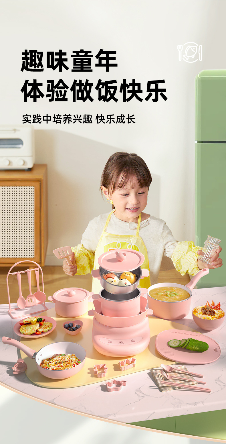 【食品级厨房玩具 孩子秒变小厨神】小伶玩具迷你厨房灶真煮食玩全套套装 全方位防烫设计 防倾倒防触电 体验做饭的快乐