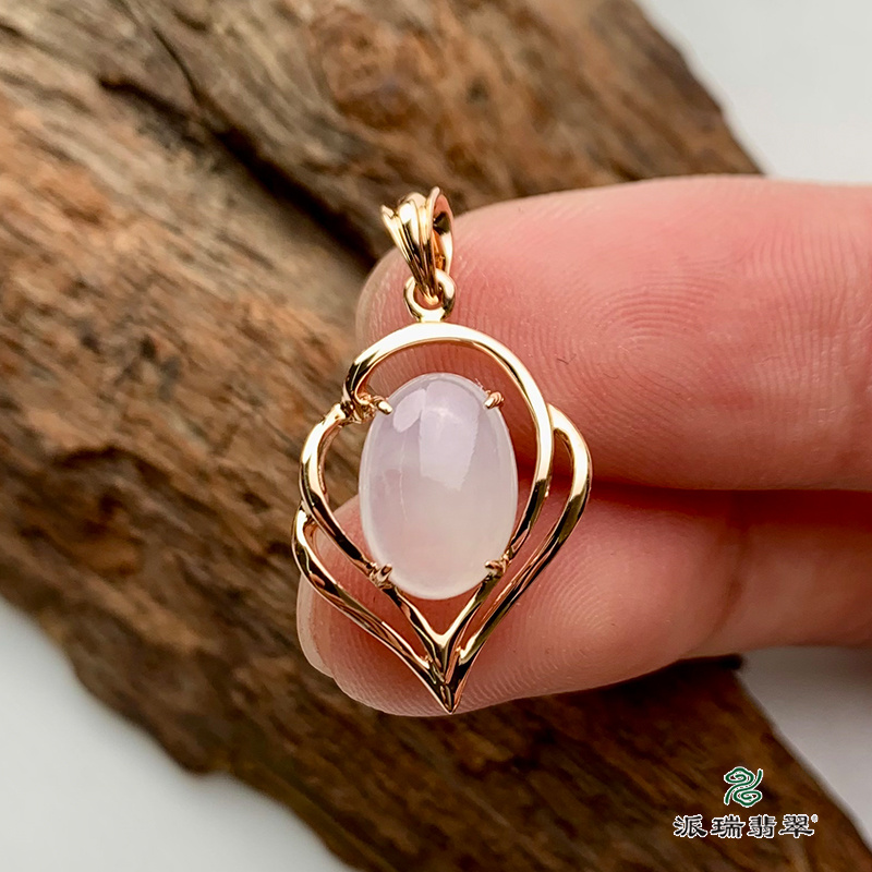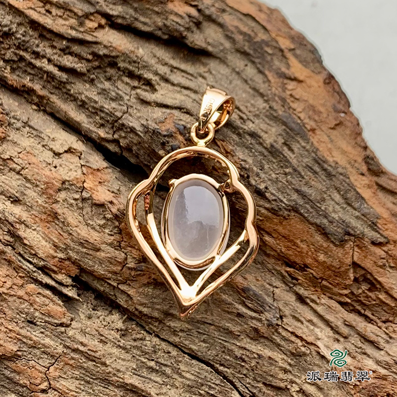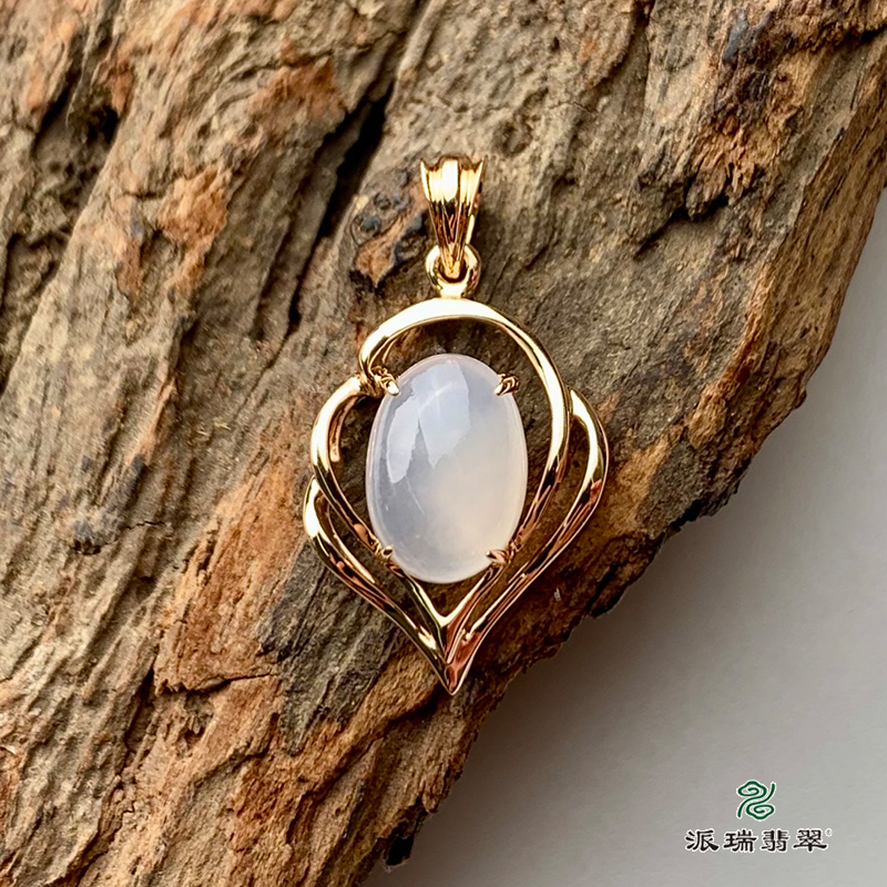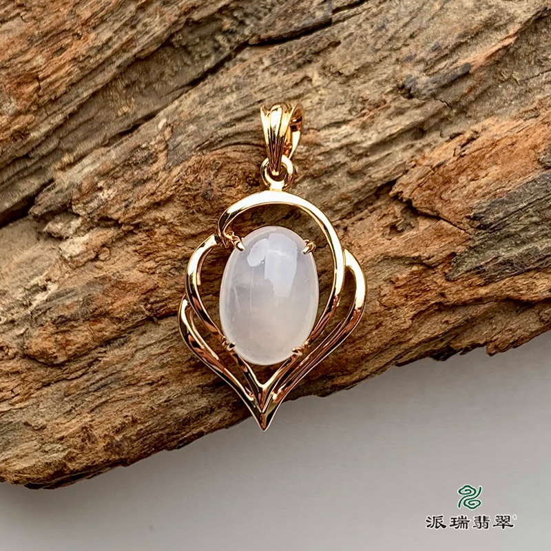 派瑞翡翠 18k金翡翠挂件 糯冰种 无色