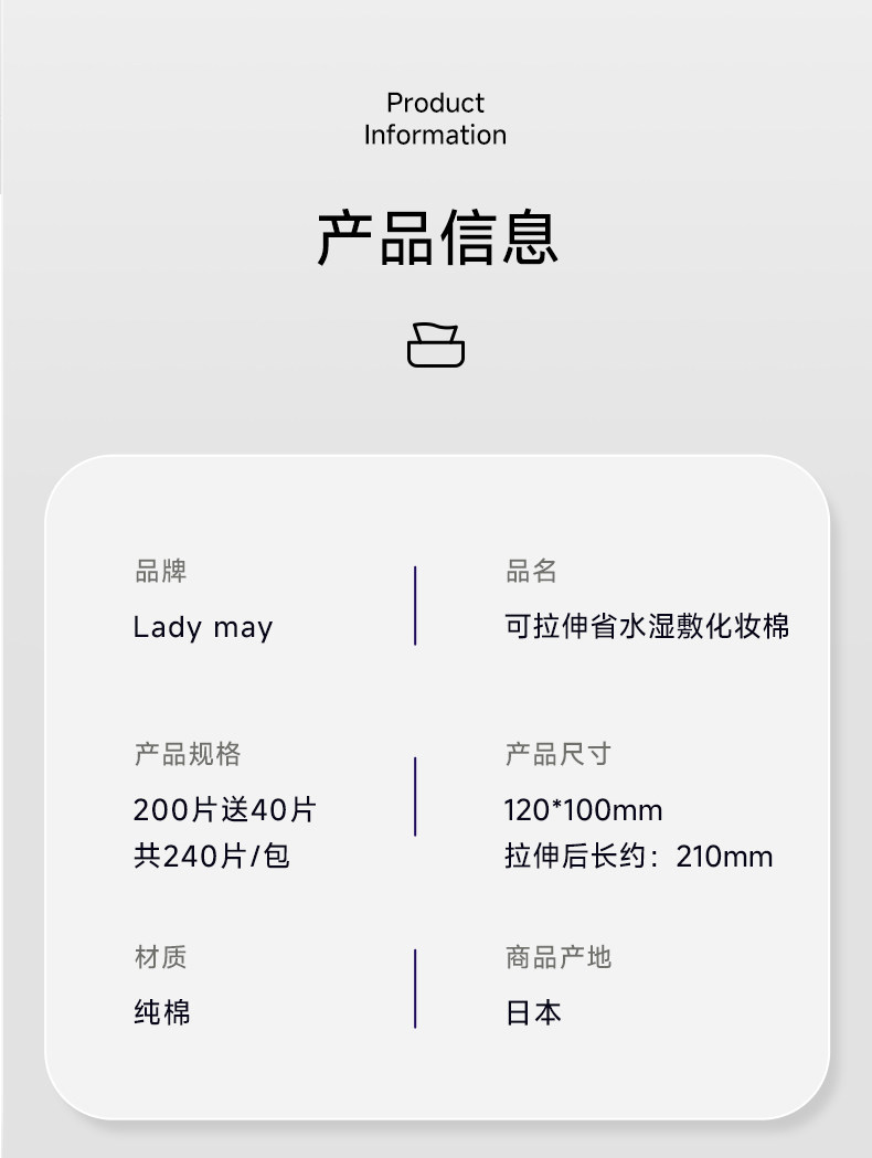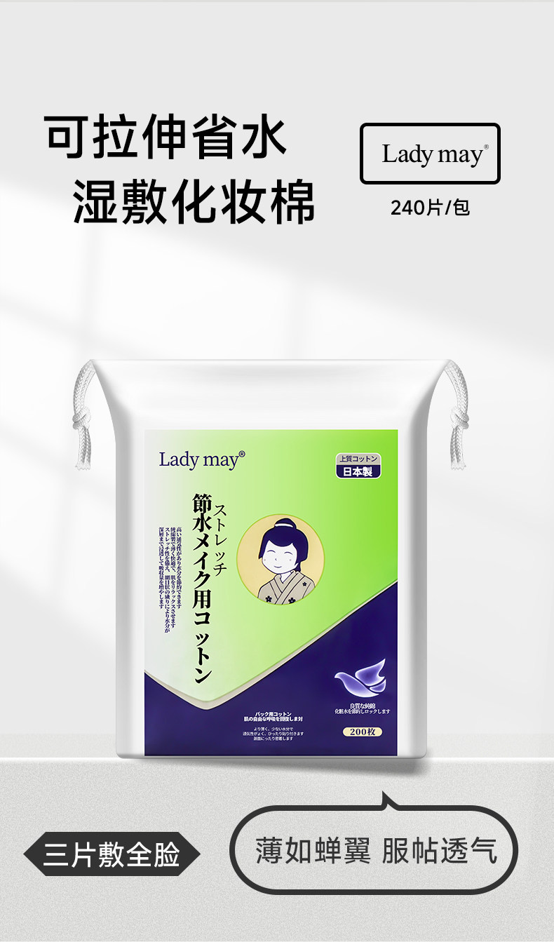 Ladymay 可拉伸省水湿敷化妆棉(200片)