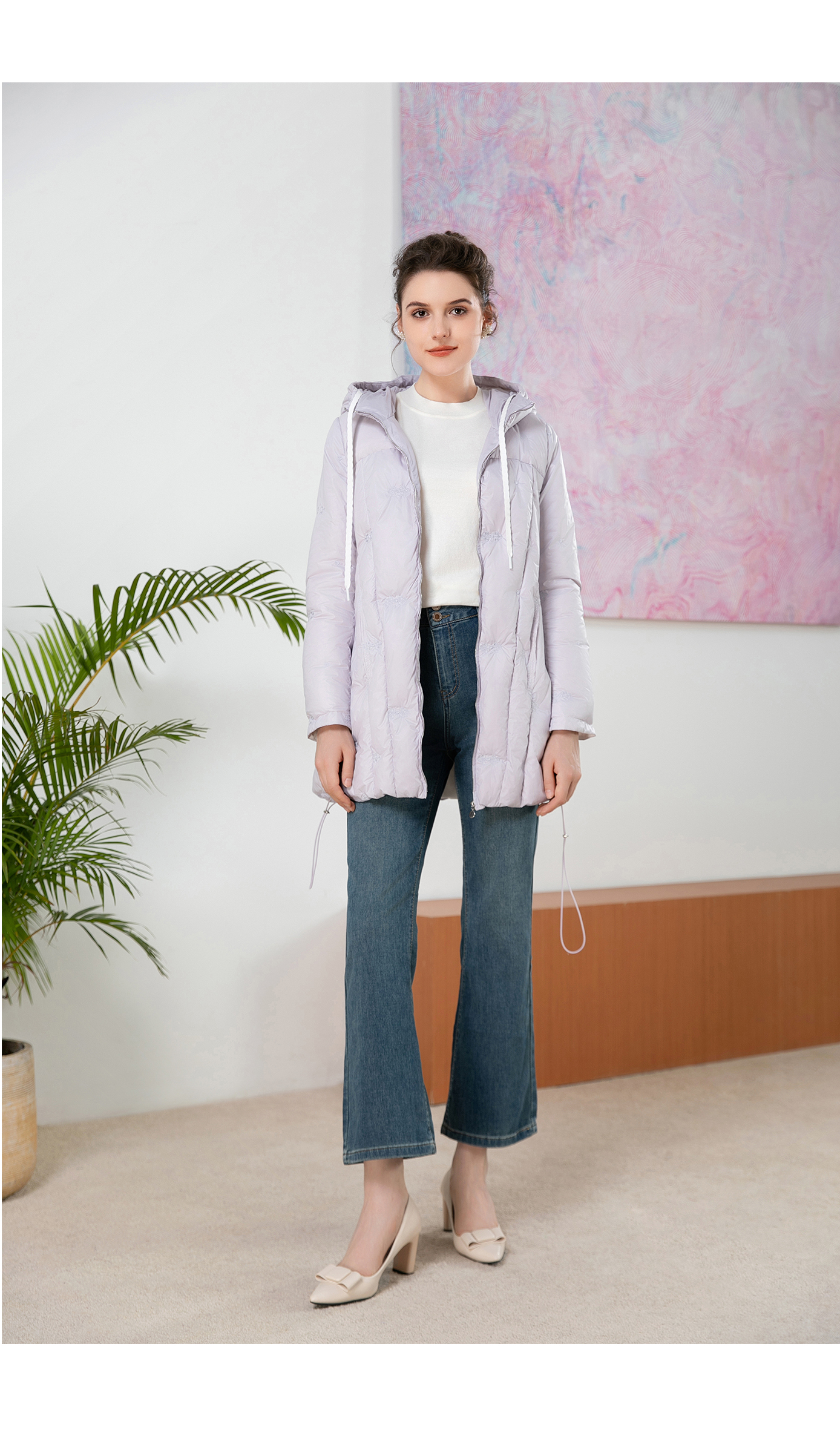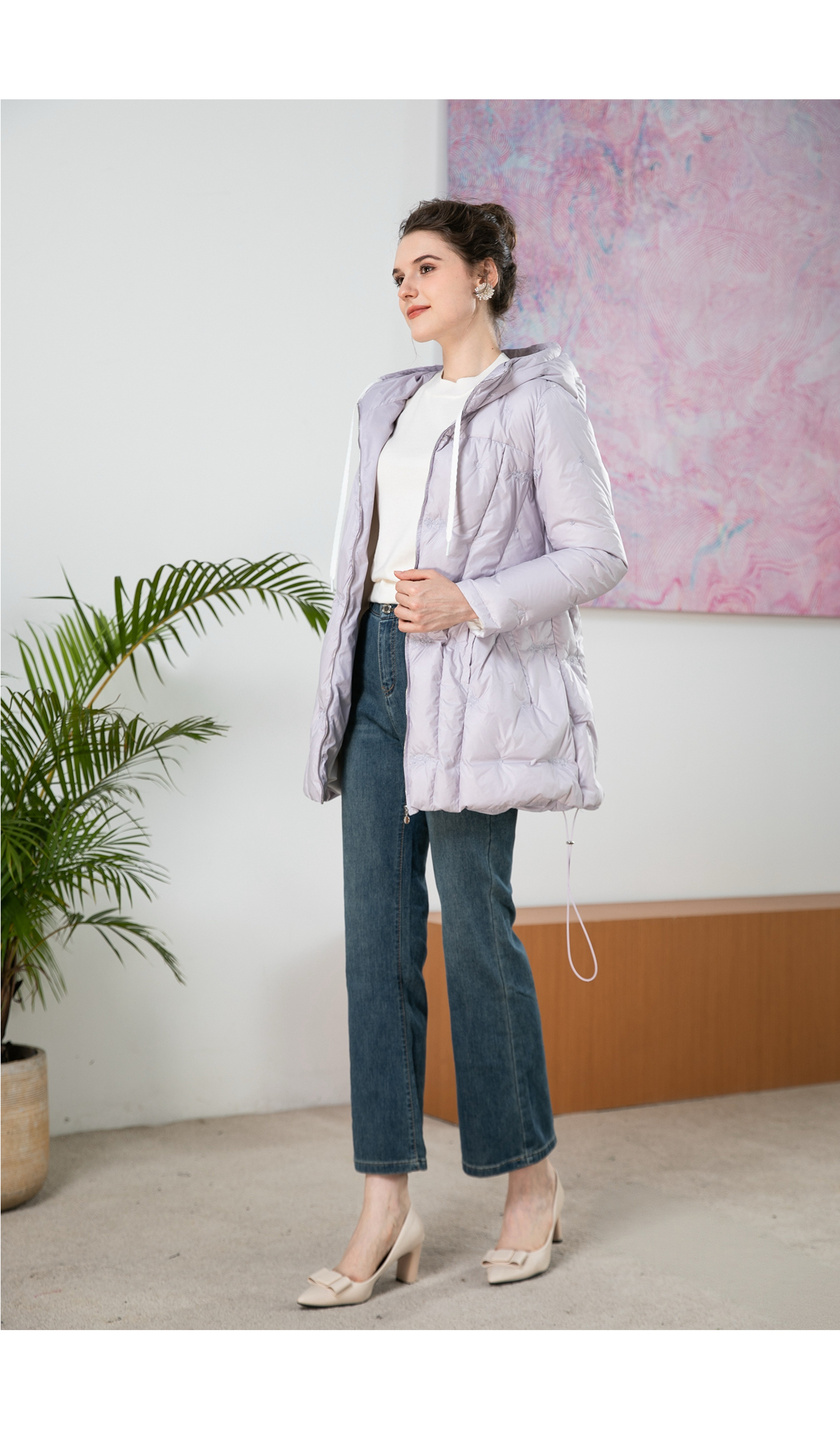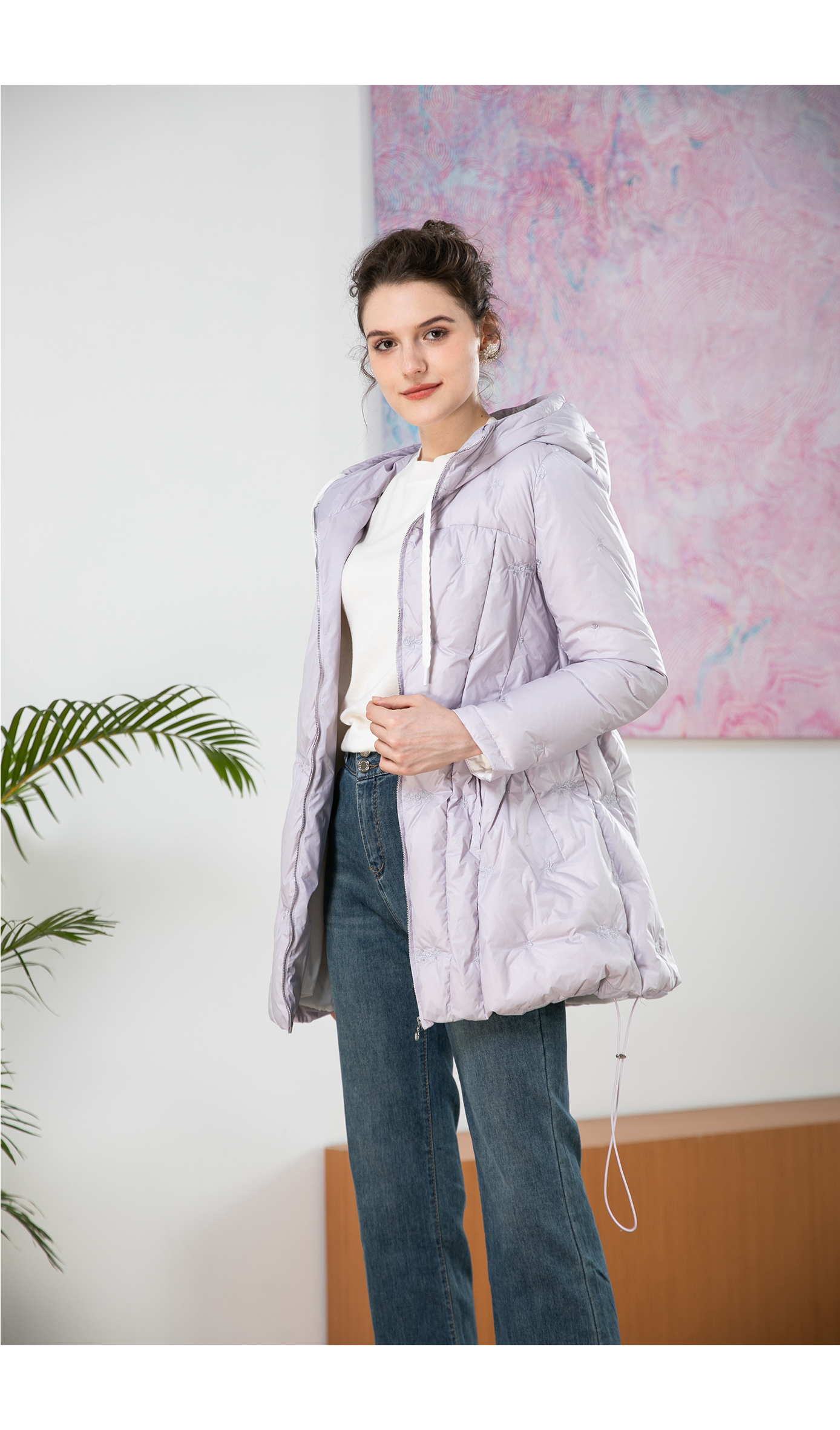司歌绣花羽绒连帽收腰冬女Y901170X