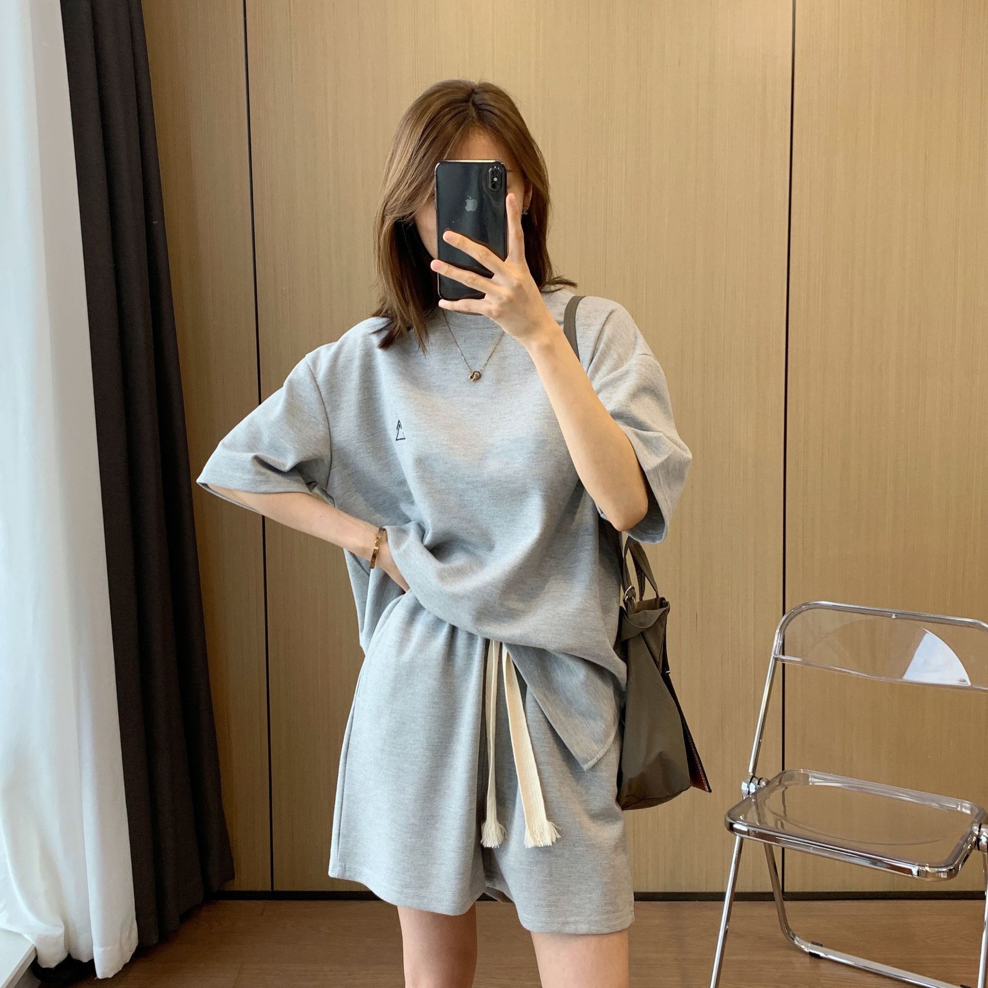 千吉娜Chigina 刺绣运动套装 短袖+短裤 显瘦百搭 宽松版型 舒适时尚