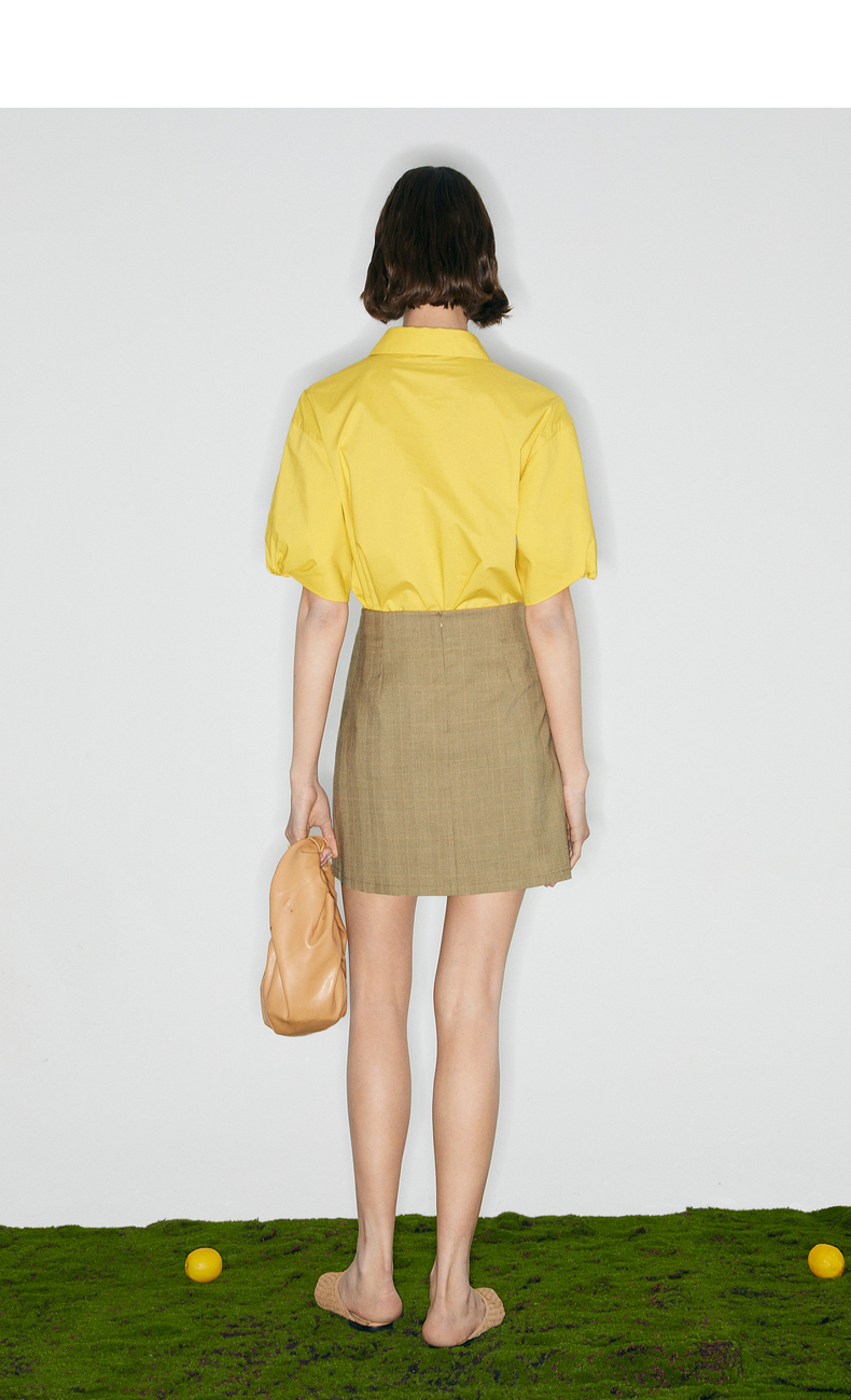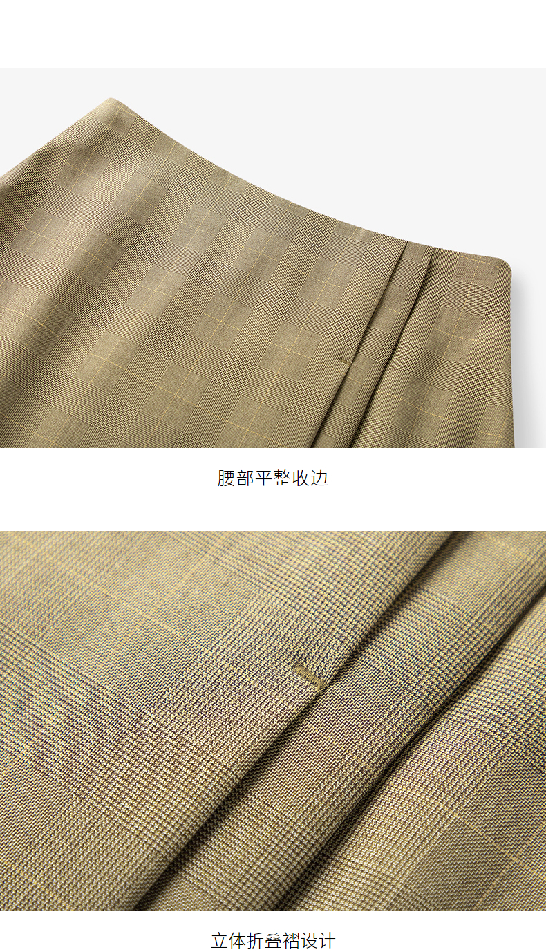 【商场同款】麦檬夏格纹不对称折叠高腰半身裙5C5140941