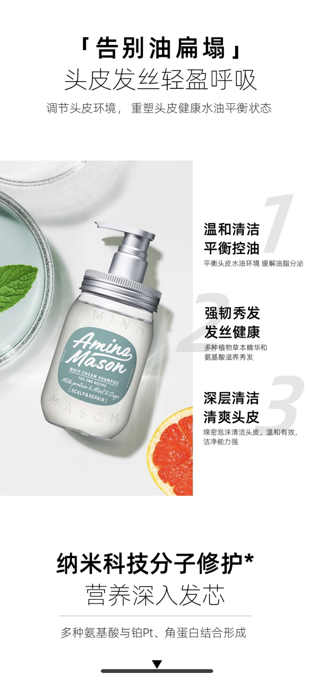 日本aminomason阿蜜浓梅森洗发水露450ml控油蓬松氨基酸无硅油