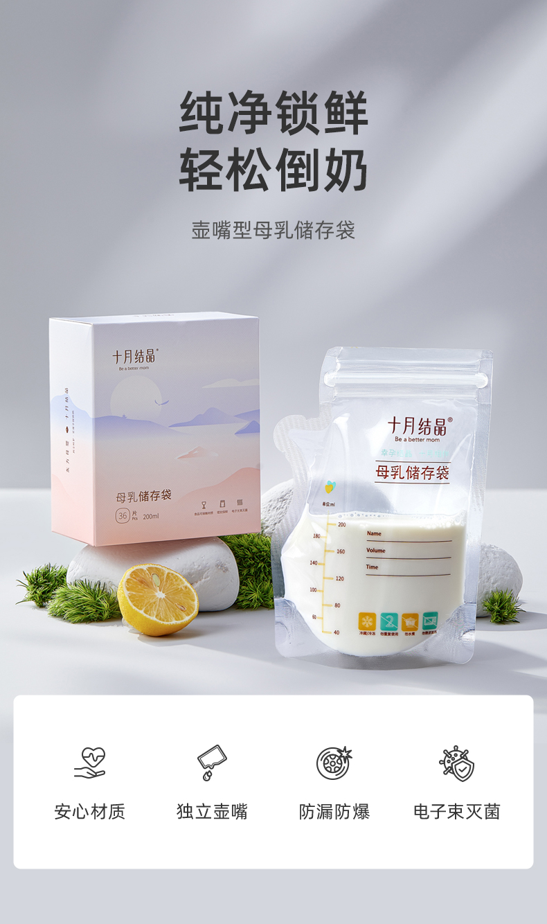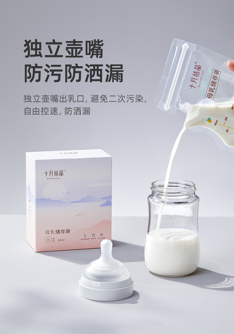 【99元10件】壶嘴型母乳储存袋密封保鲜冷藏储奶保鲜袋200ml*36片