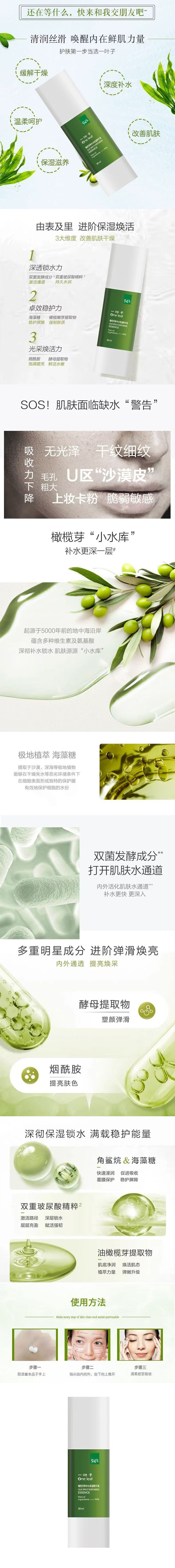 一叶子橄榄芽鲜补水保湿精华液30ml新款-4525 深度补水 缓解干燥