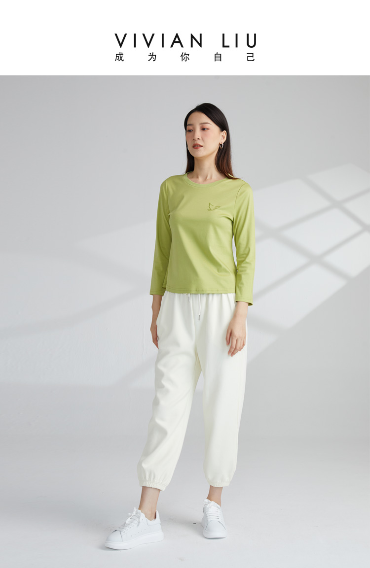 VIVIAN LIU薇薇安刘 R2347318秋女装新款圆领绣花长袖针织上衣