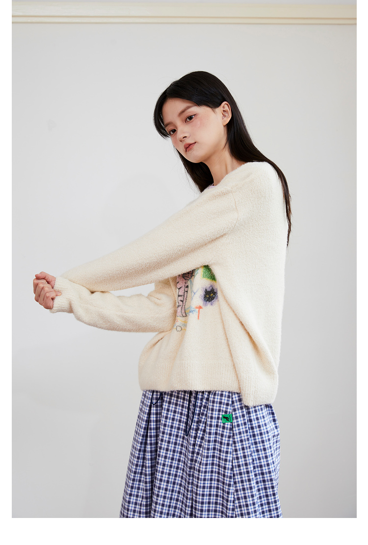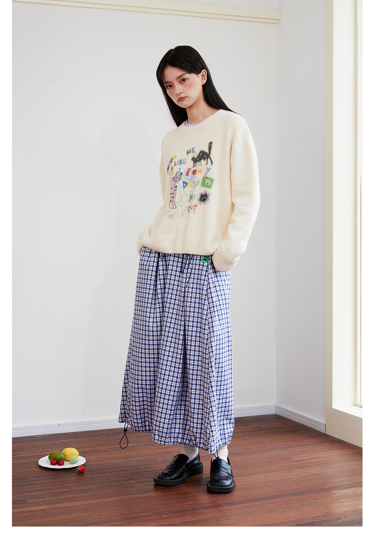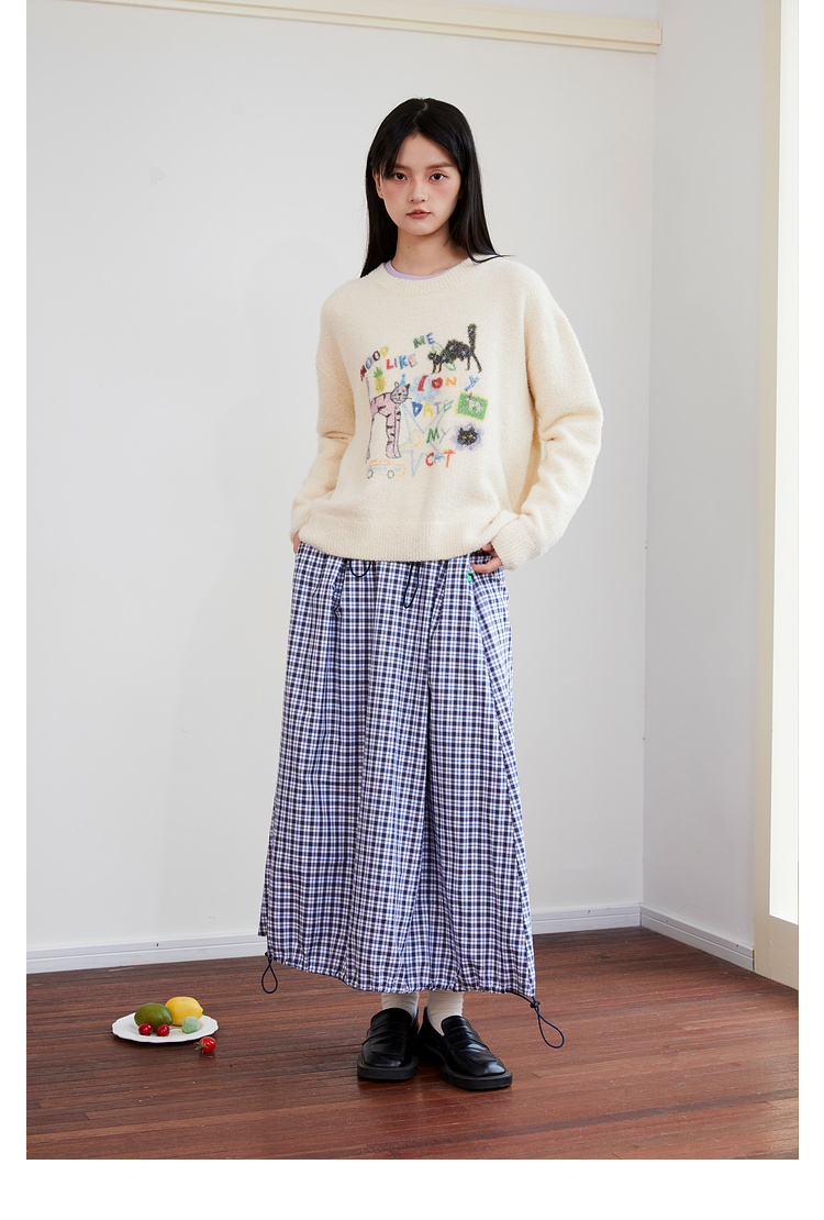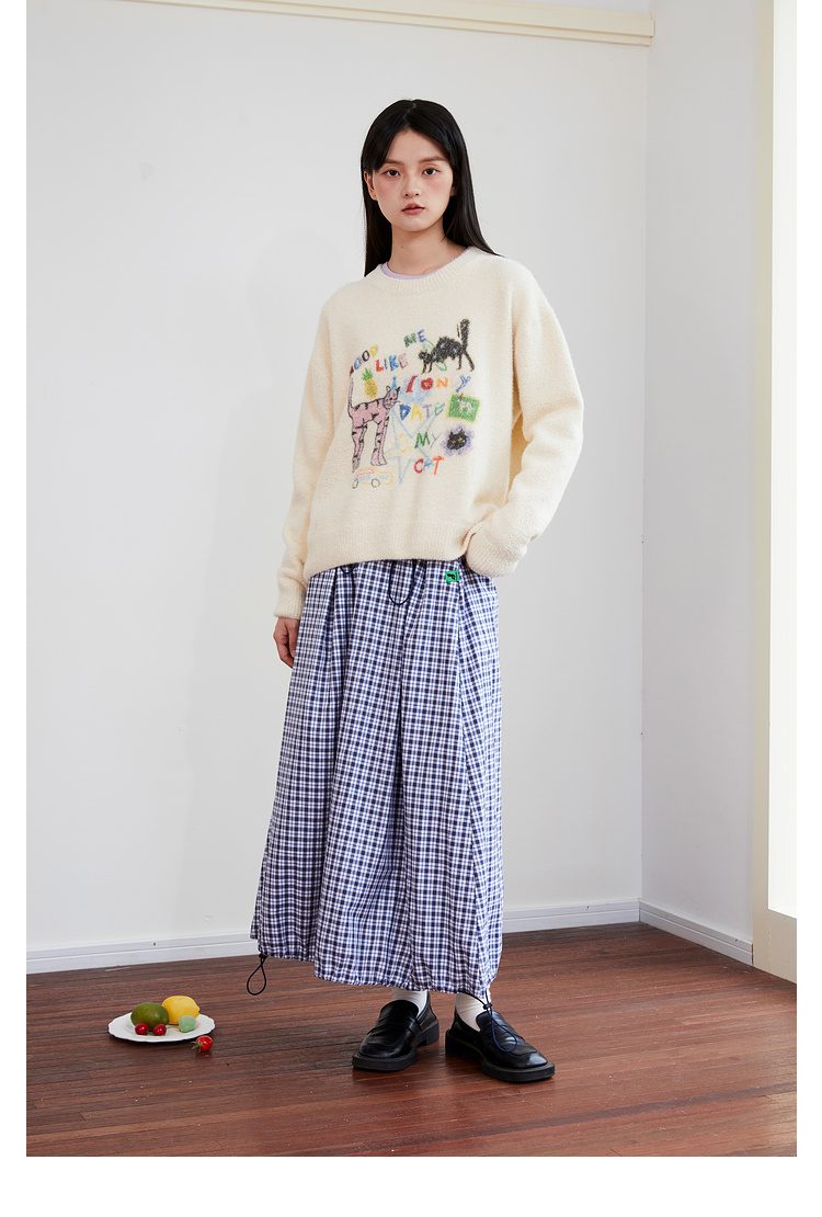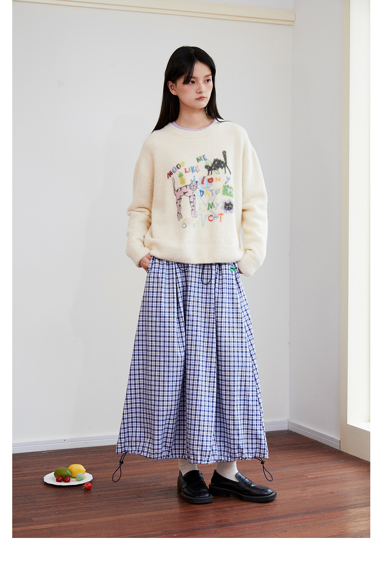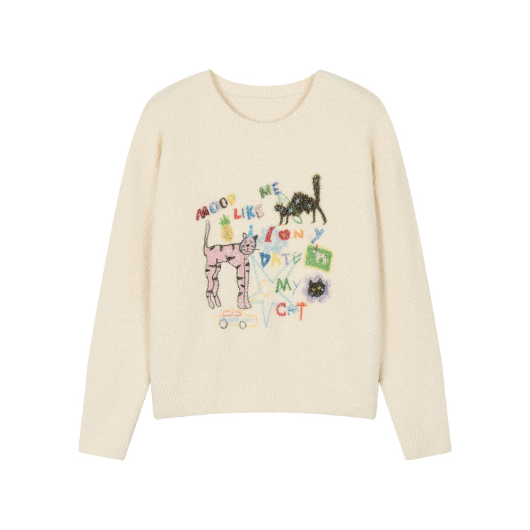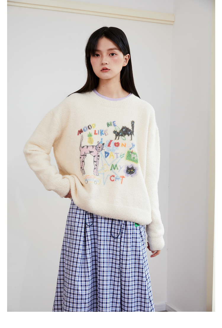 Mood Like Me/MMY2413/手绘涂鸦slogan猫咪铅笔画针织毛衣