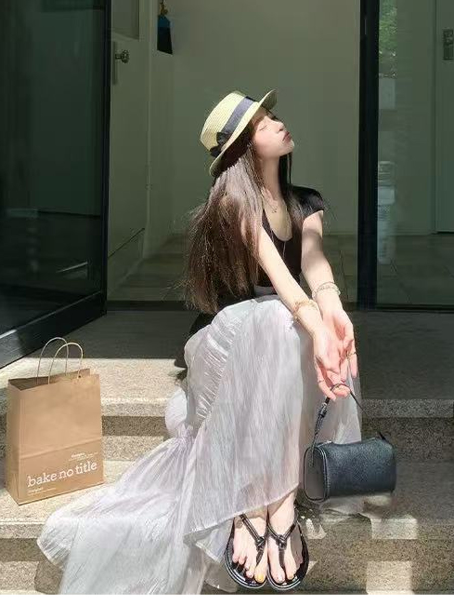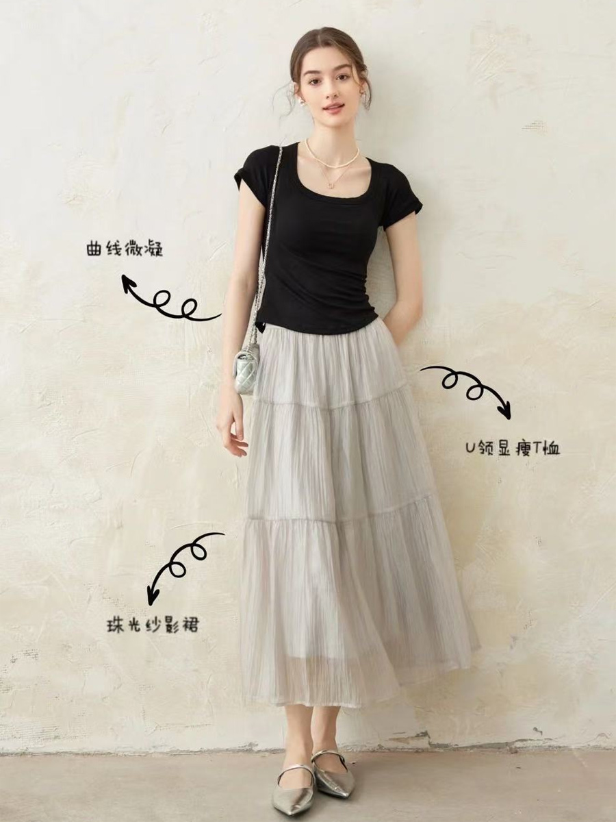 【百图lulu定制】【珠光纱影半裙】轻薄的质地如同“轻纱薄幔” 轻盈飘逸,穿起来不闷汗不黏腻 半裙