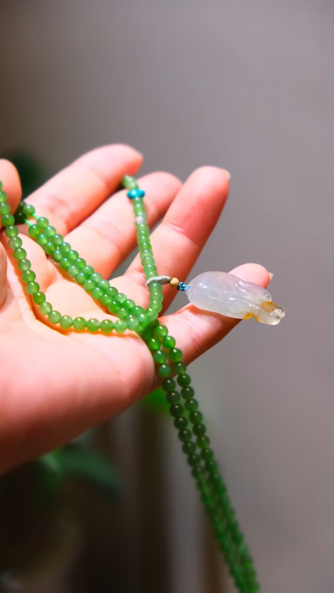 哇哦~碧玉项链~玉化高瓷蓝绿松~