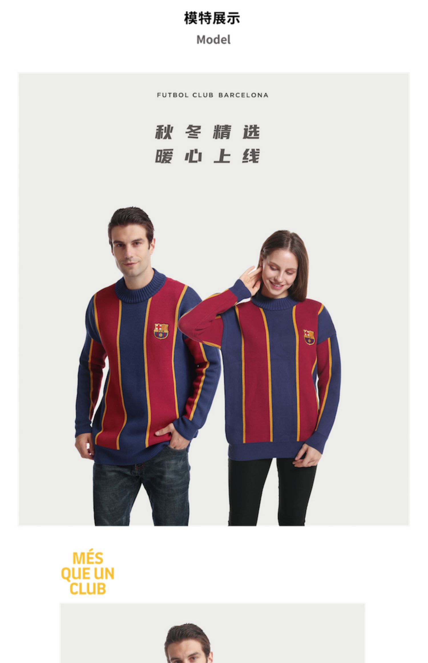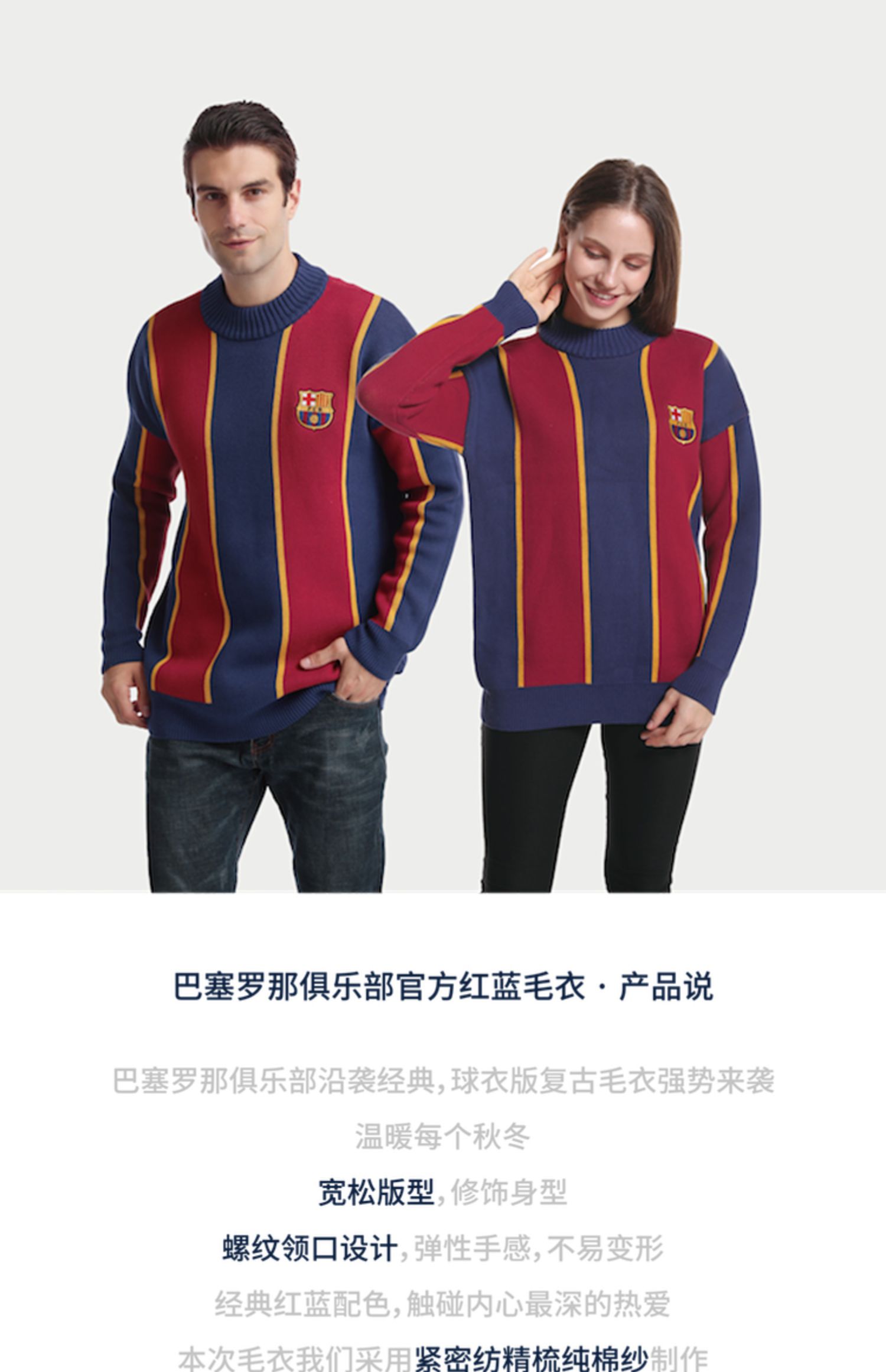 巴塞罗那俱乐部商品丨巴萨官方新赛季红蓝毛衣足球迷针织衫厚